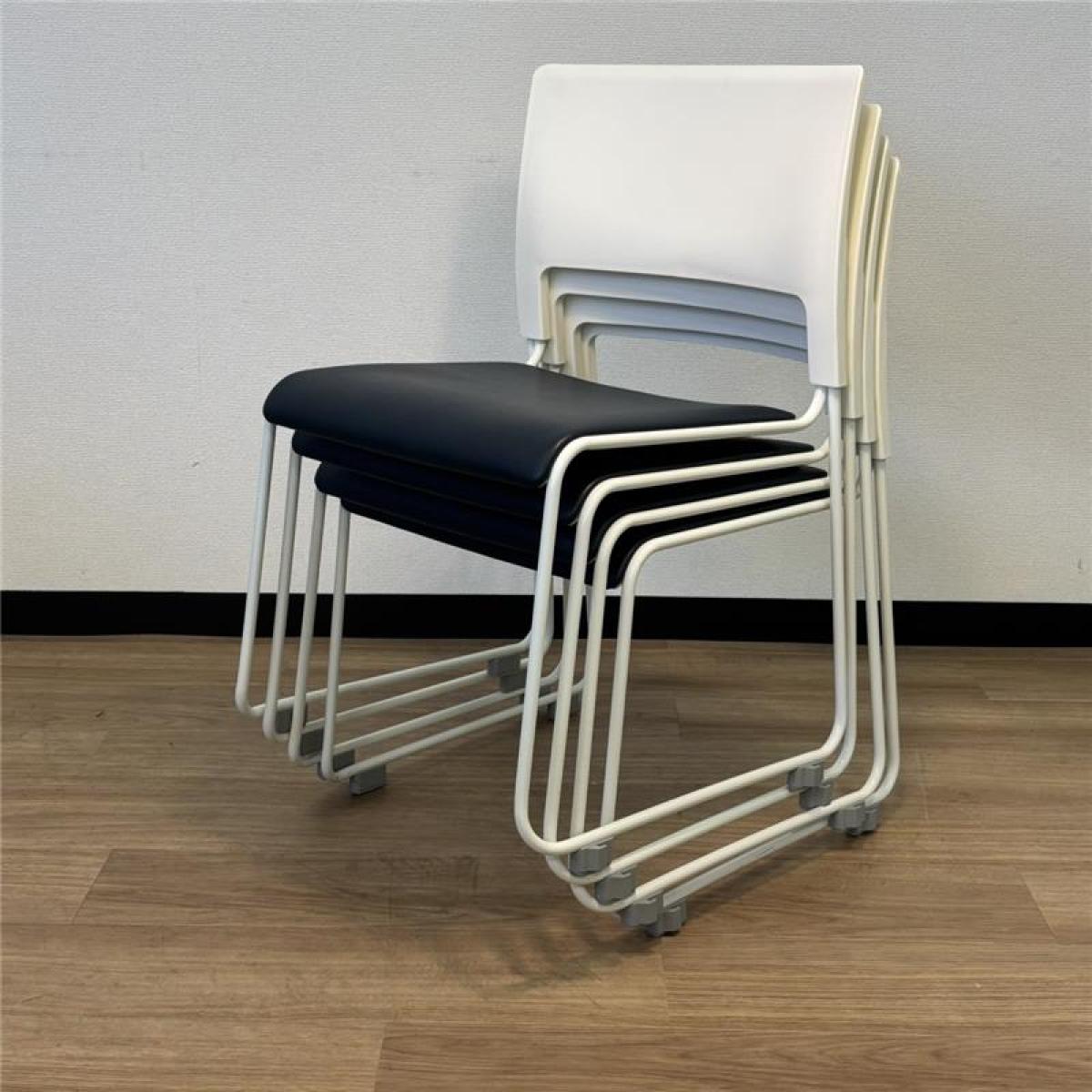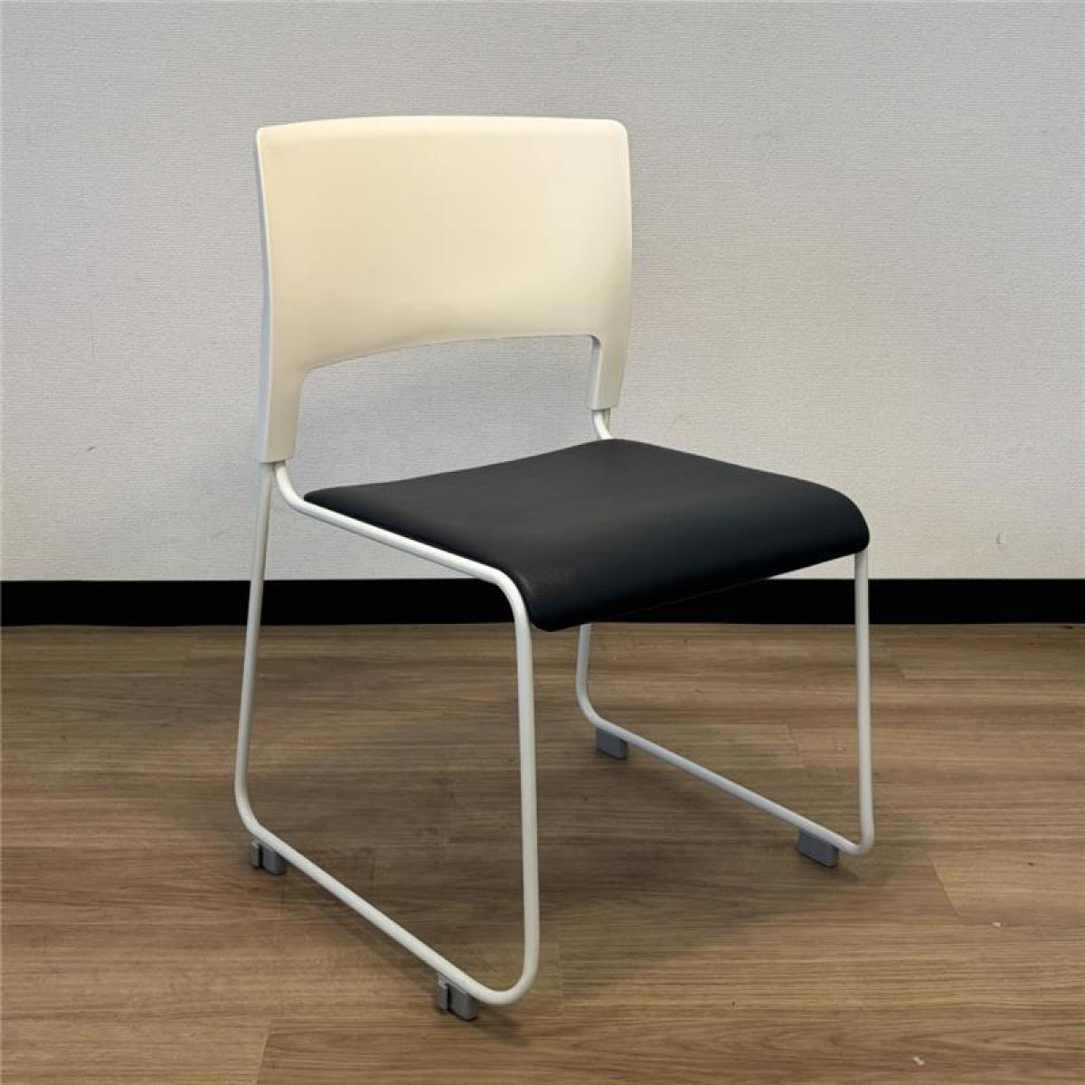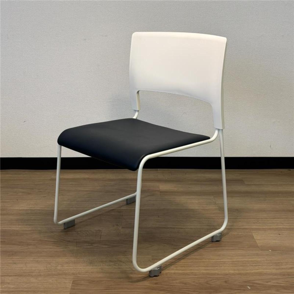 【シンプルなデザインで使いやすい!重ねて収納可能なスタッキングチェア!会議室、共有スペースなどに!】 スタッキングチェア ミーティングチェア ■ブラック×ホワイト【2507】弊社使用欄【A】- 埼玉本店