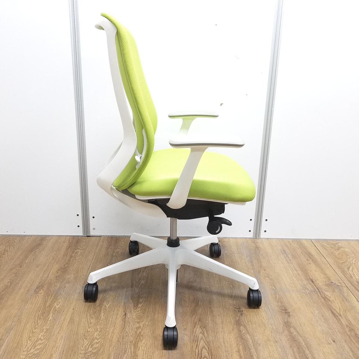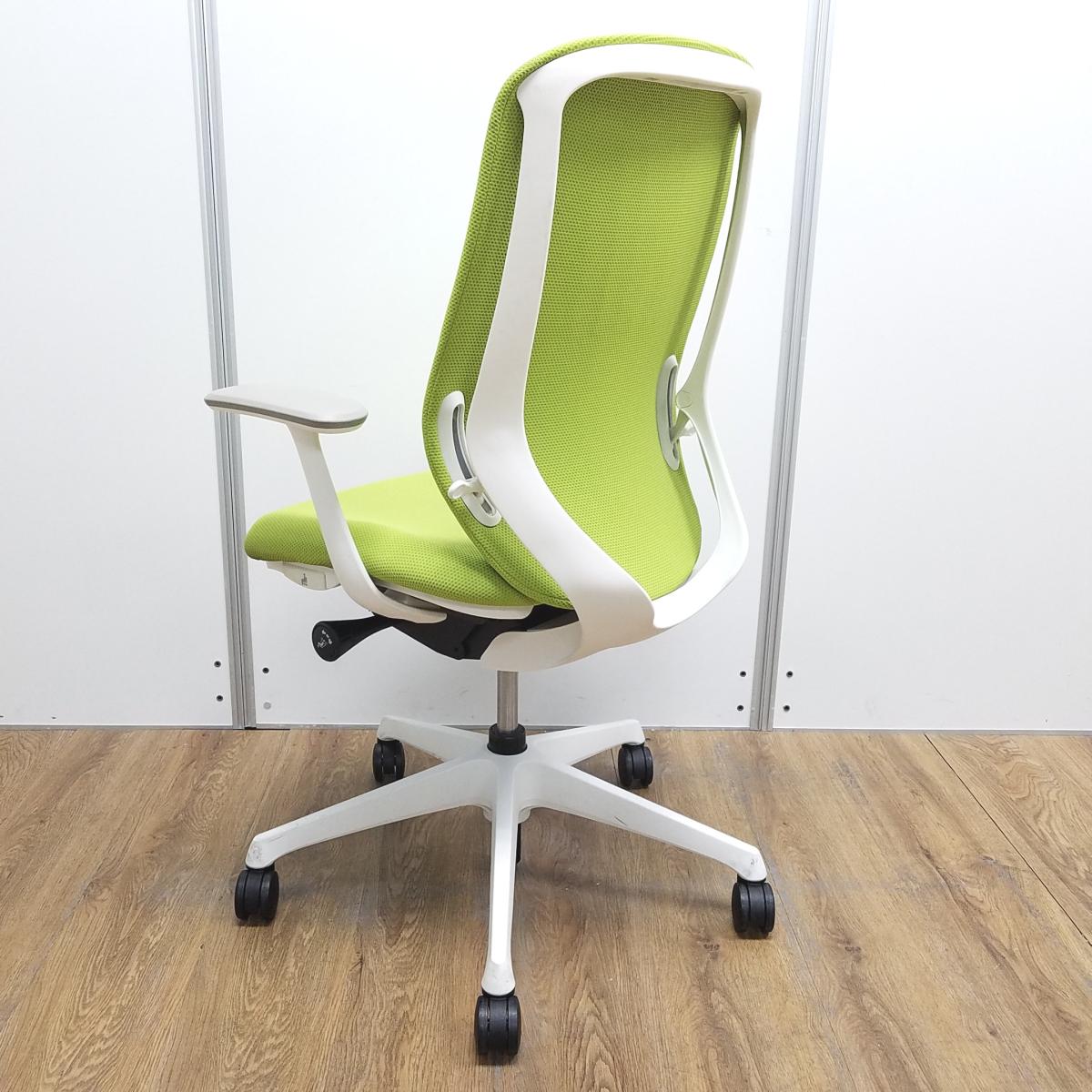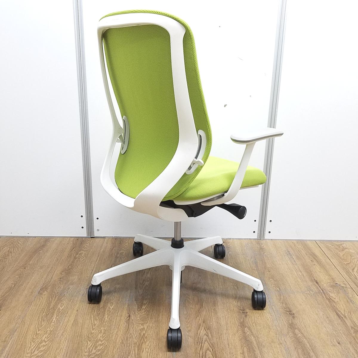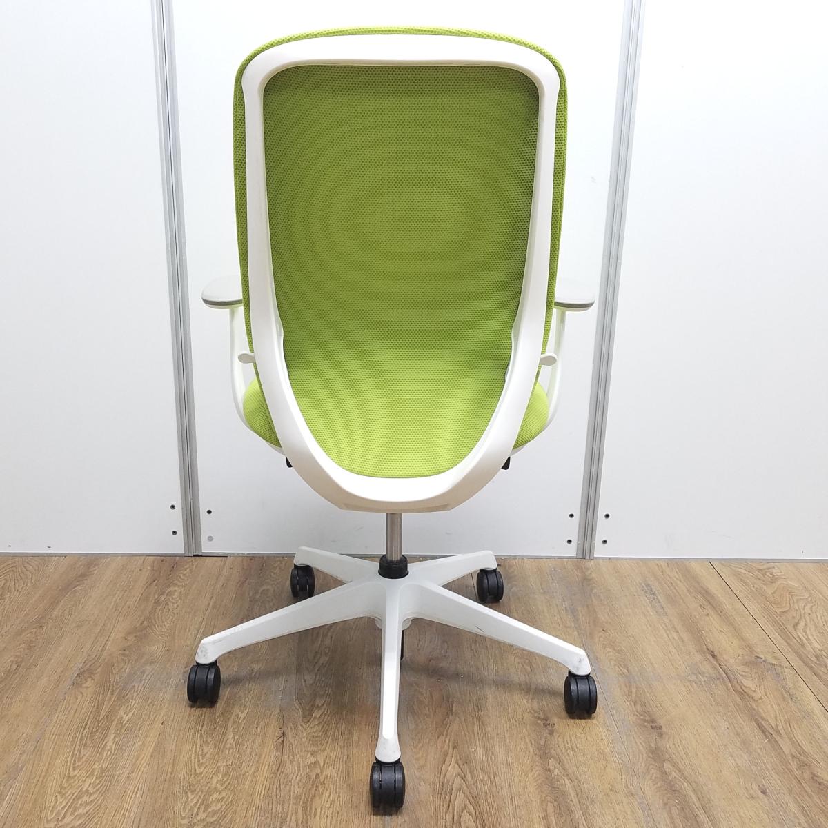 オカムラ製 シルフィーシリーズ ライムグリーン ホワイトフレーム 背面クッション デザインアーム※固定肘 快適な座り心地を実現! 人気シリーズの背面クッションモデル! 肘付きハイバックチェア!!- 京都東寺店