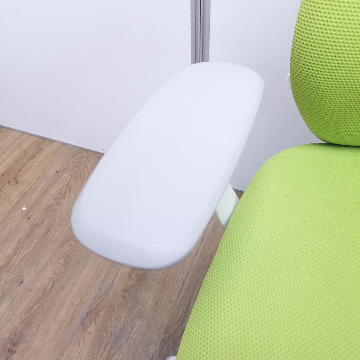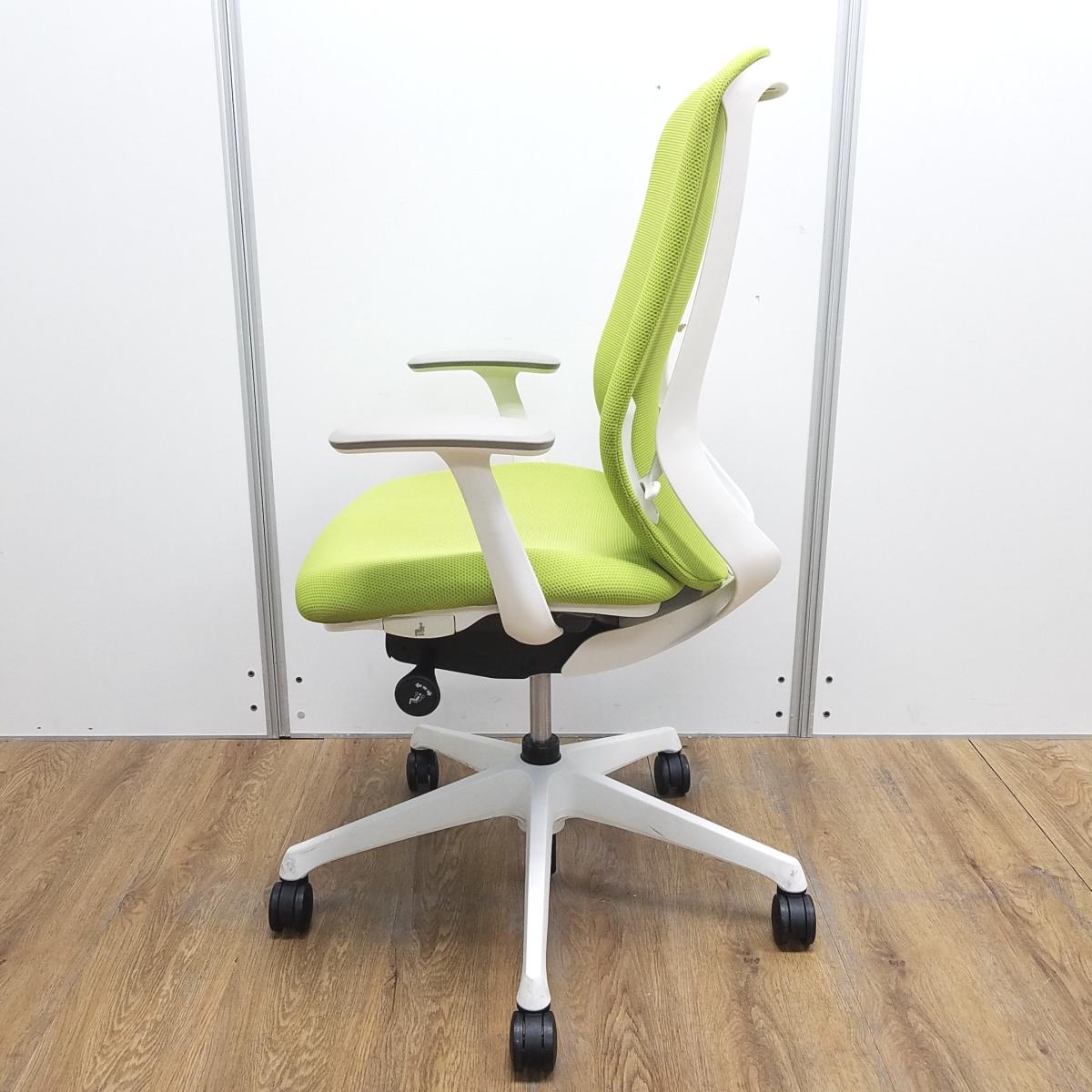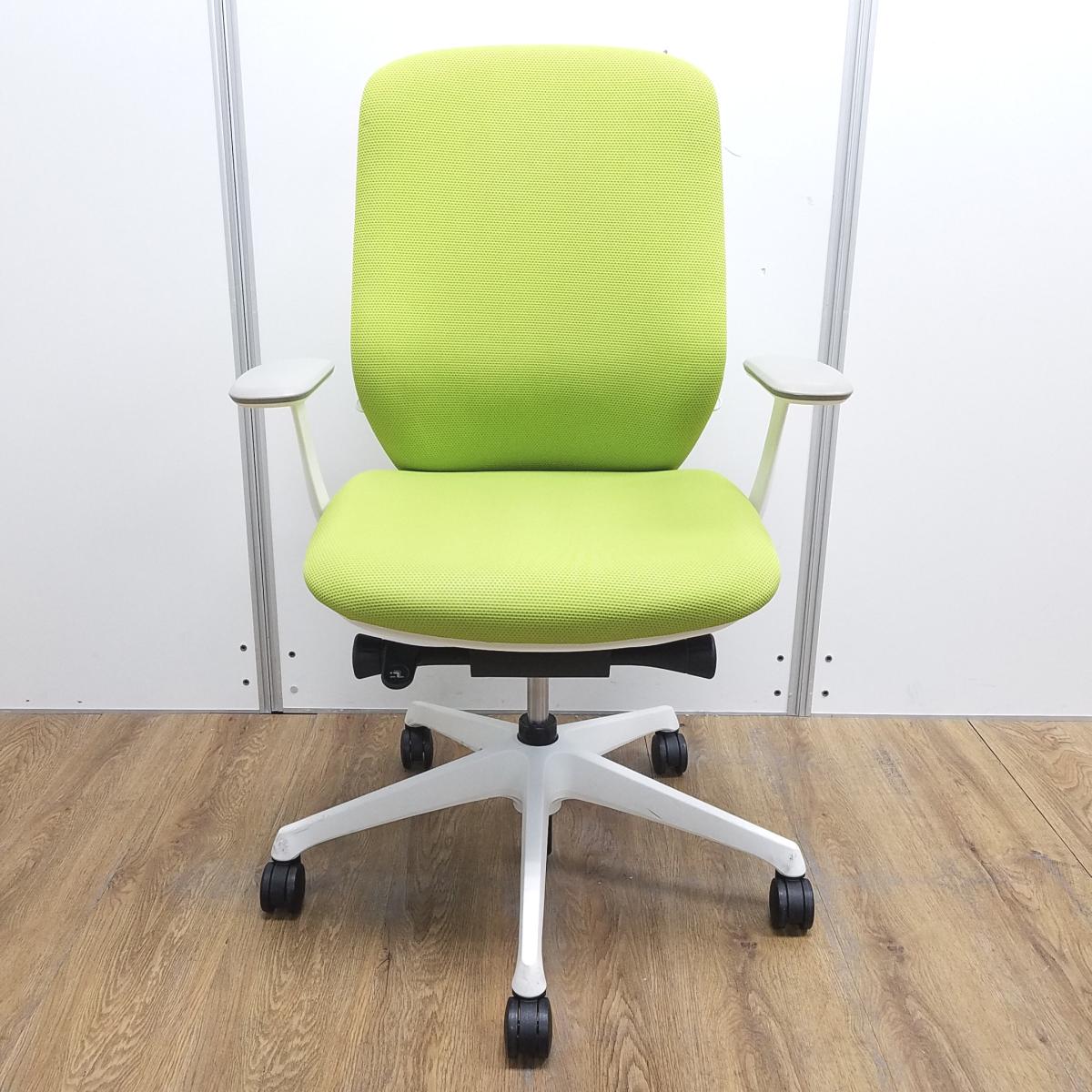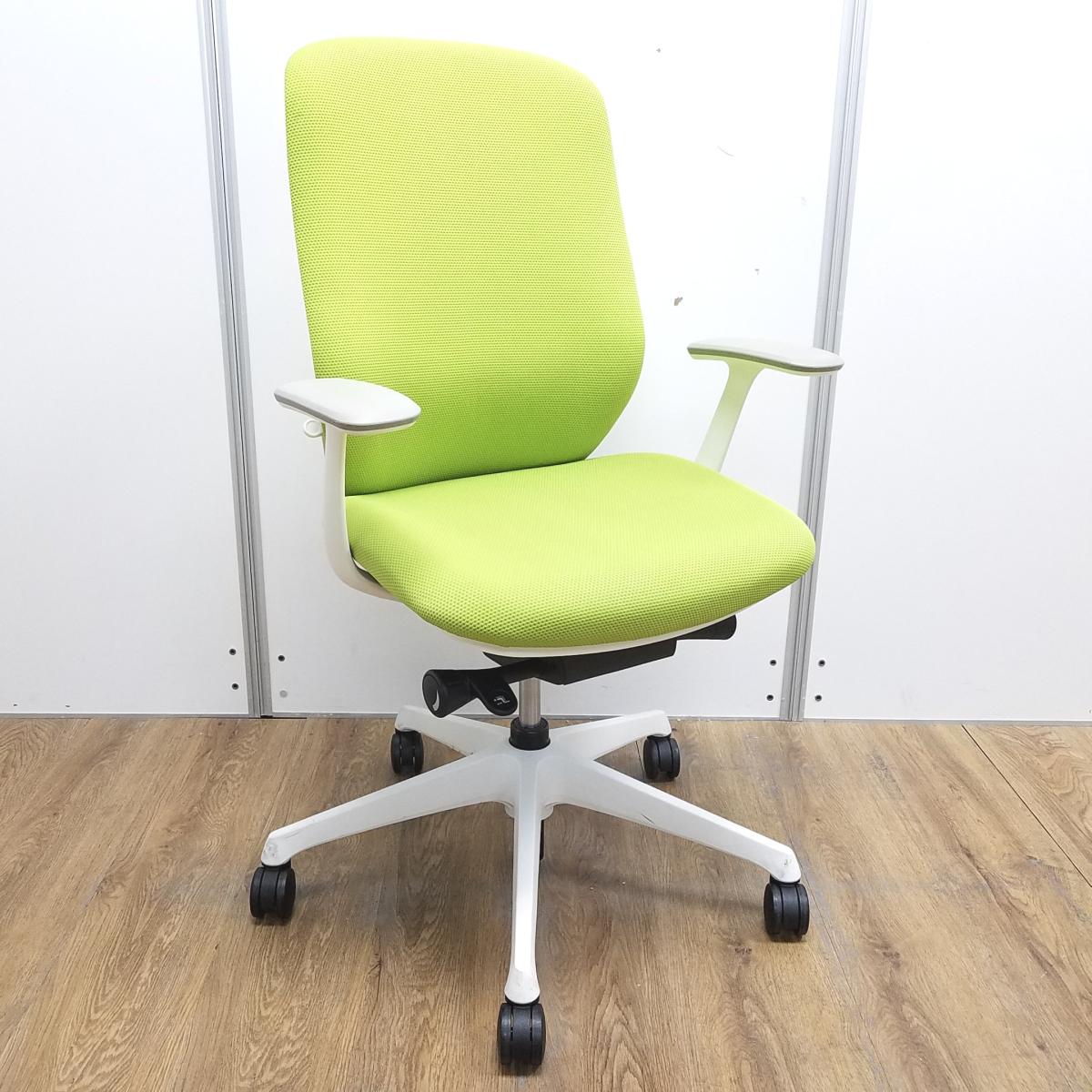 オカムラ製 シルフィーシリーズ ライムグリーン ホワイトフレーム 背面クッション デザインアーム※固定肘 快適な座り心地を実現! 人気シリーズの背面クッションモデル! 肘付きハイバックチェア!!- 京都東寺店