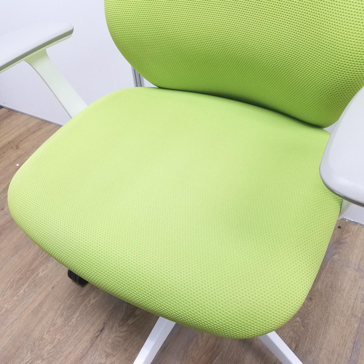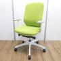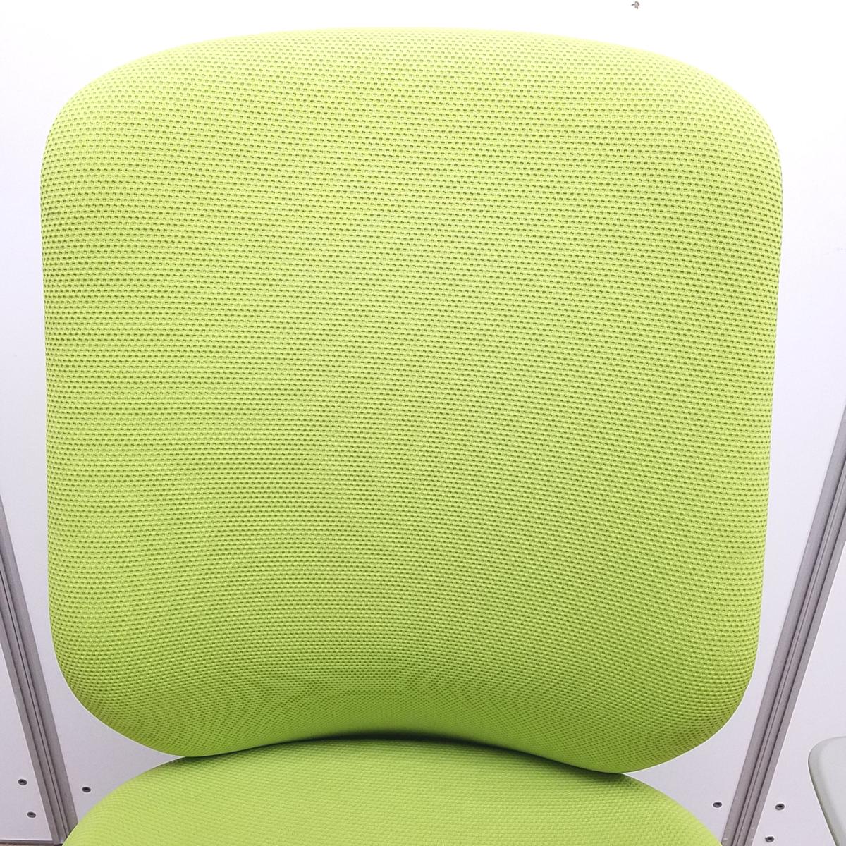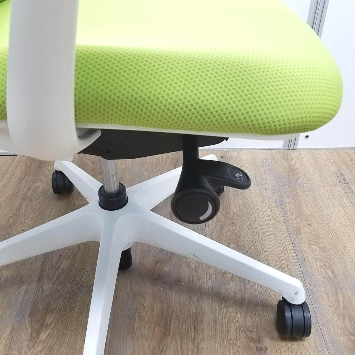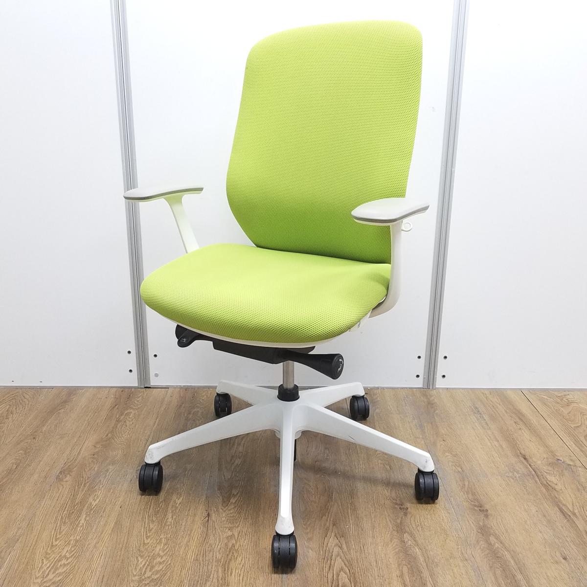 オカムラ製 シルフィーシリーズ ライムグリーン ホワイトフレーム 背面クッション デザインアーム※固定肘 快適な座り心地を実現! 人気シリーズの背面クッションモデル! 肘付きハイバックチェア!!- 京都東寺店
