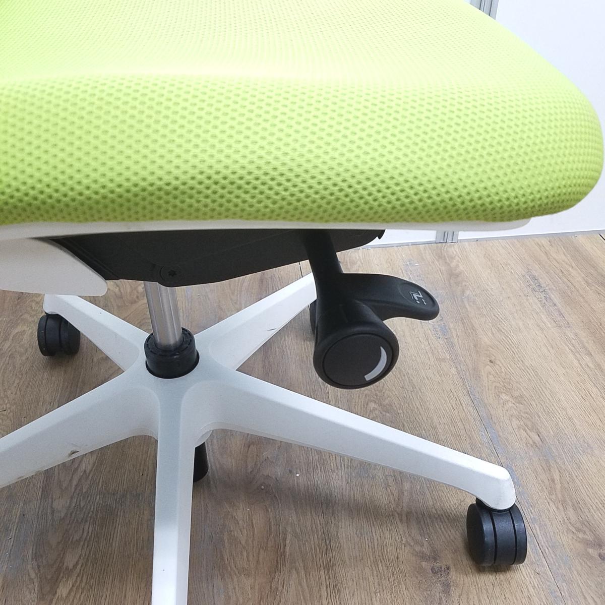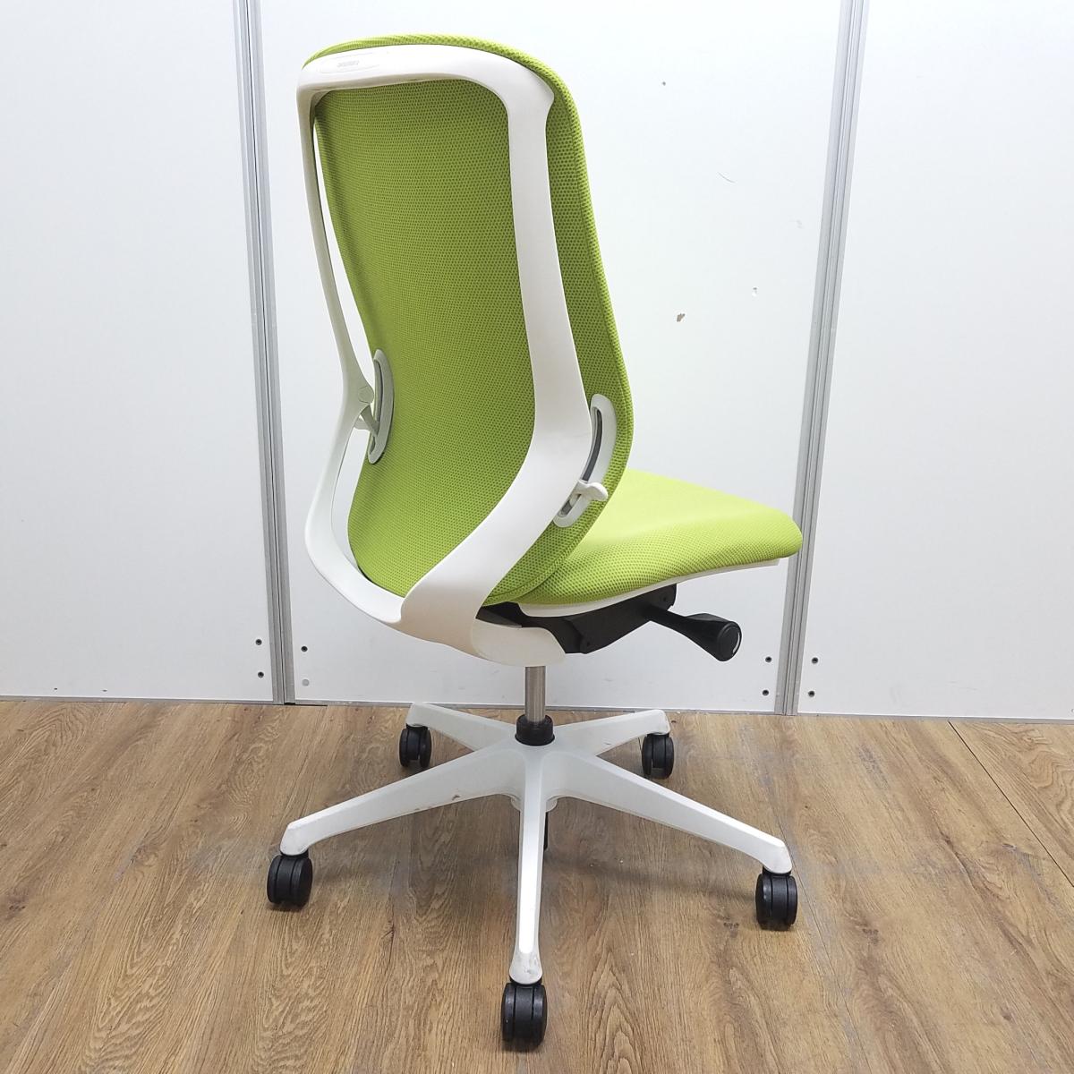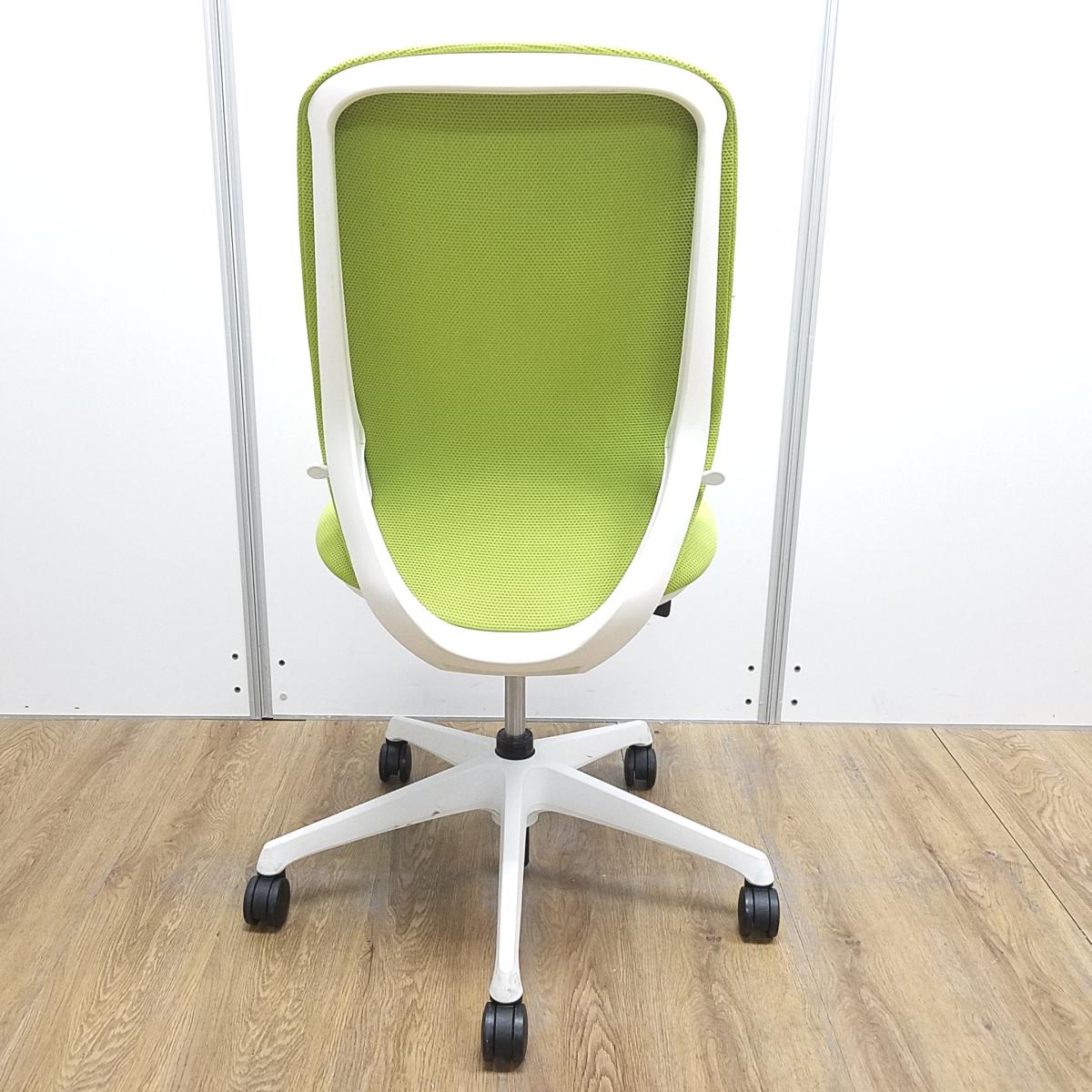 オカムラ製 シルフィーシリーズ ライムグリーン ホワイトフレーム 背面クッション コートハンガー付き 快適な座り心地を実現! 人気シリーズの背面クッションモデル! 肘無しハイバックチェア!!