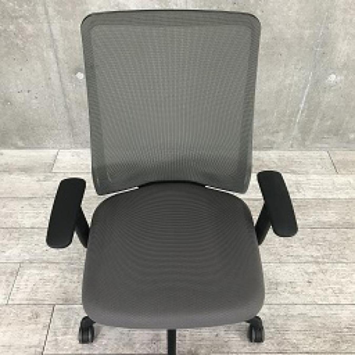 【在庫入替】【2脚限定】【クレジット決済優先】 現行モデルの人気チェア 通気性抜群!背面のメッシュが背中を包み込みます! オカムラ フルーエント ミディアムグレー 可動肘付 オフィスバスターズ 梅田本店- 大阪梅田本店