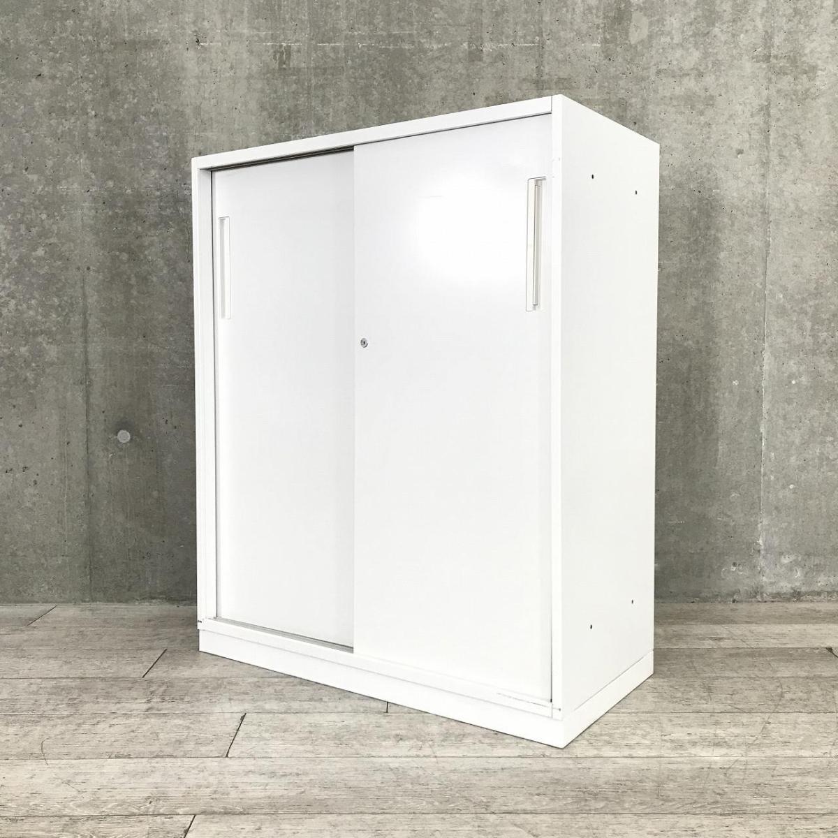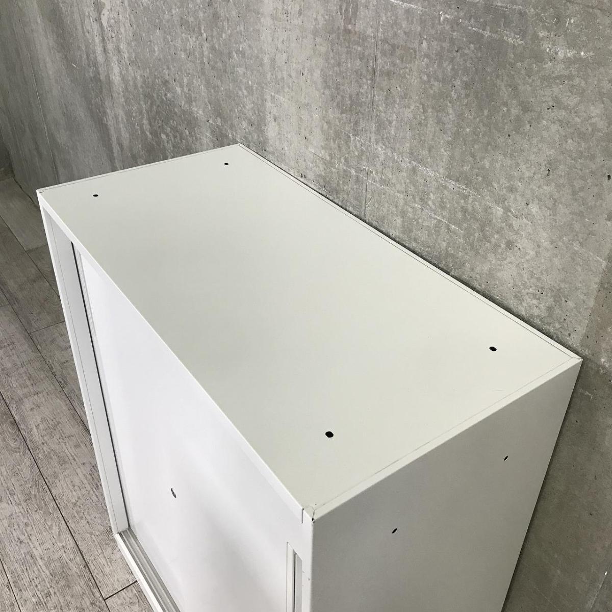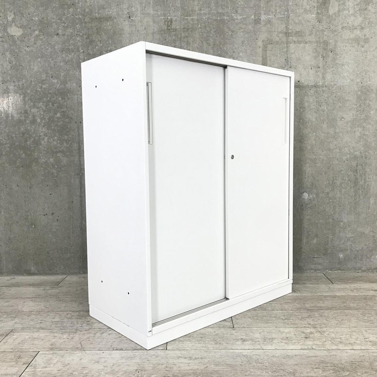 【スライド引き戸だから開閉スペースに困りません!人気の引き違い書庫!】■引違い書庫 2枚戸タイプ ローキャビネット シリンダー錠 ホワイト/内田洋行/HS- 池袋店