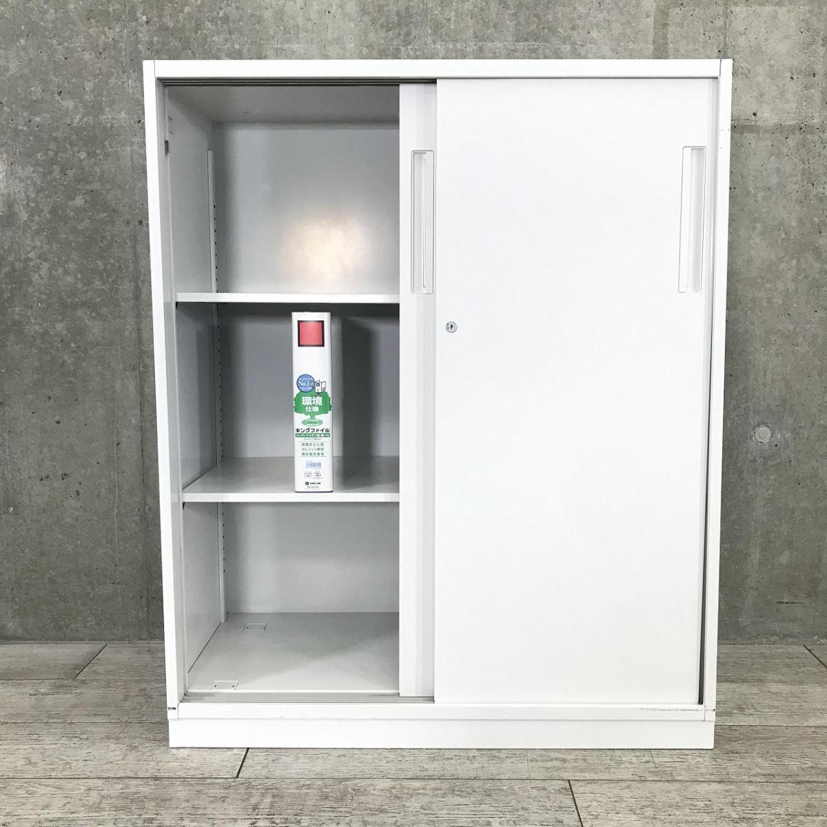 【在庫入替セール品!】【スライド引き戸だから開閉スペースに困りません!人気の引き違い書庫!】/オススメ(おすすめ) /人気商品【弊社使用欄:A01001006】■引違い書庫 2枚戸タイプ ローキャビネット シリンダー錠 ホワイト/内田洋行/HS