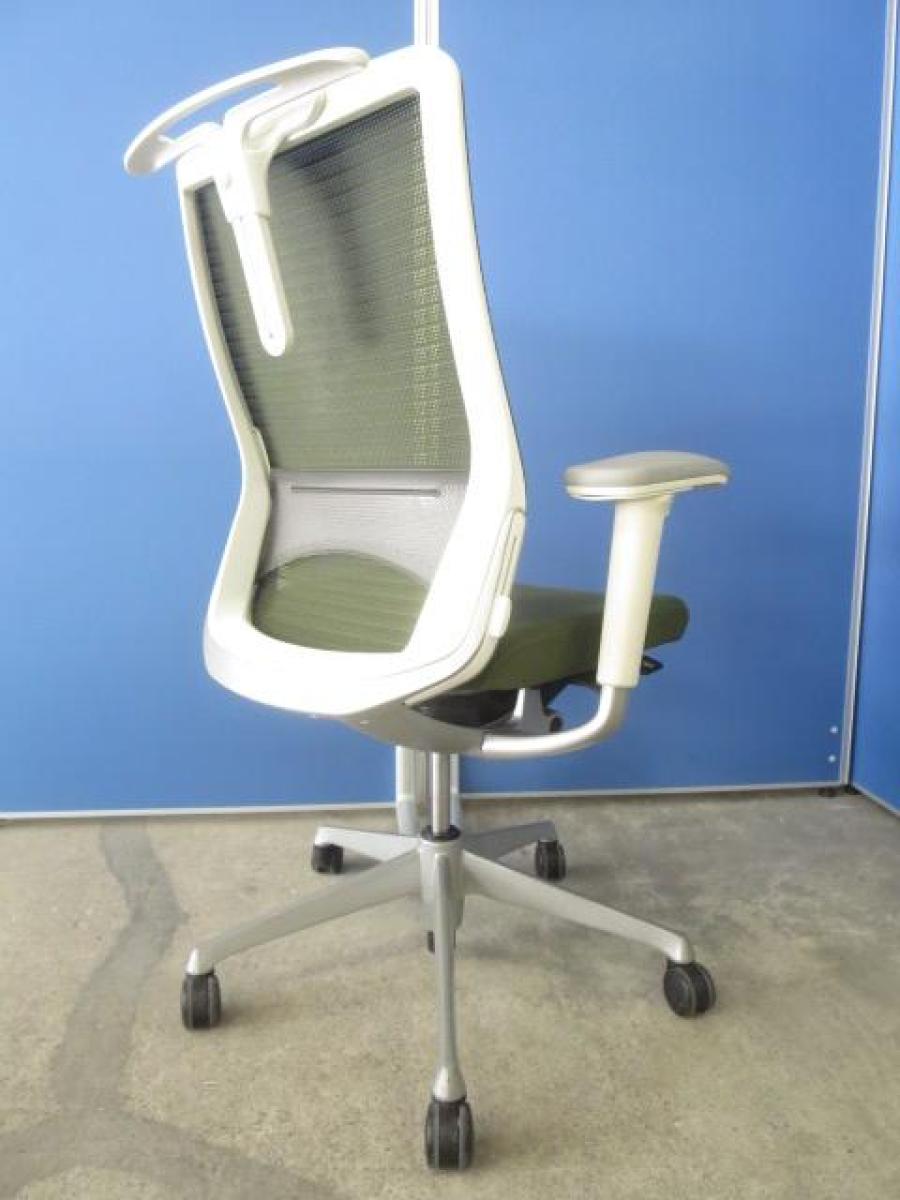 【ヘッドレスト付きならコレ!厚めのクッションで快適な座り心地を実現!】■オカムラ(okamura)製 コーラル(choral)チェア ■エクストラハイバック ■ヘッドレスト付き ■背メッシュ ■グリーン ■デザインアーム〈岐阜・愛知・三重・静岡・福井〉