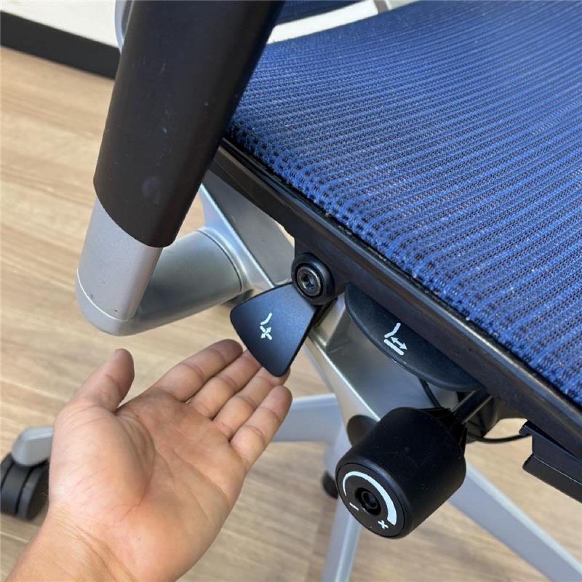 【オカムラ製の王道高級チェア!通気性ばっちりで長時間の着座も快適に過ごせます!】 ■オカムラ(okamura) バロン(Baron) ローバック 稼働肘付 ■ブルー ■背面メッシュ 座面メッシュ【2503】弊社使用欄【A01003674】※- 埼玉本店