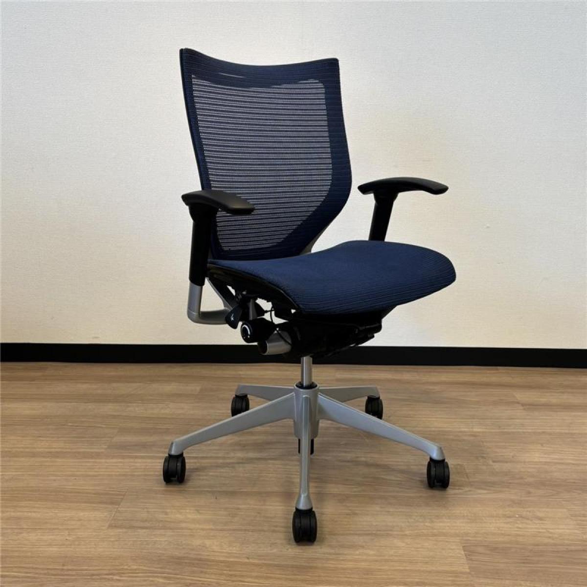 【硬めのメッシュ座面が大人気!国産メッシュチェアの代表格!】■オカムラ(okamura)製 バロン(Baron)チェア ハイバック 肘付き ■背面メッシュ ■固定肘 ■色:ダークブルー ■ハンガー付き【IB】