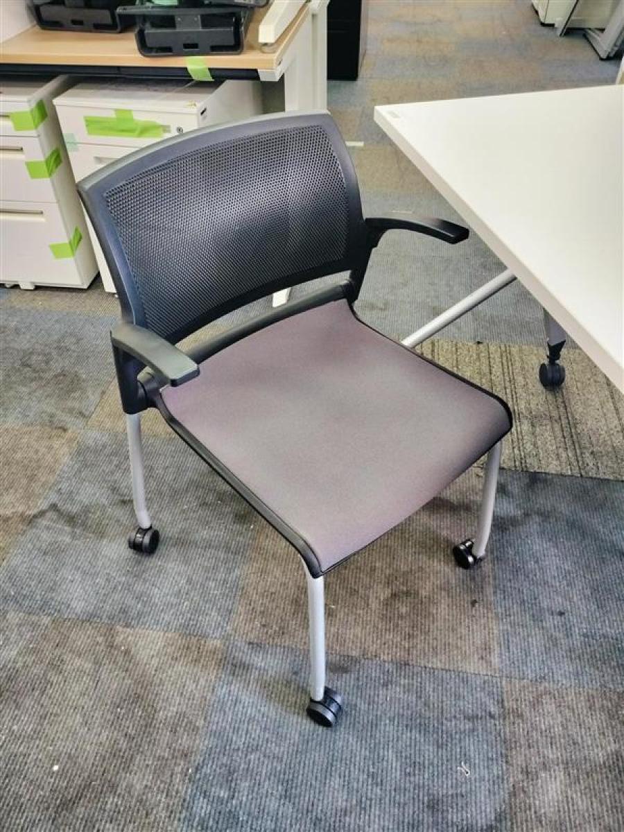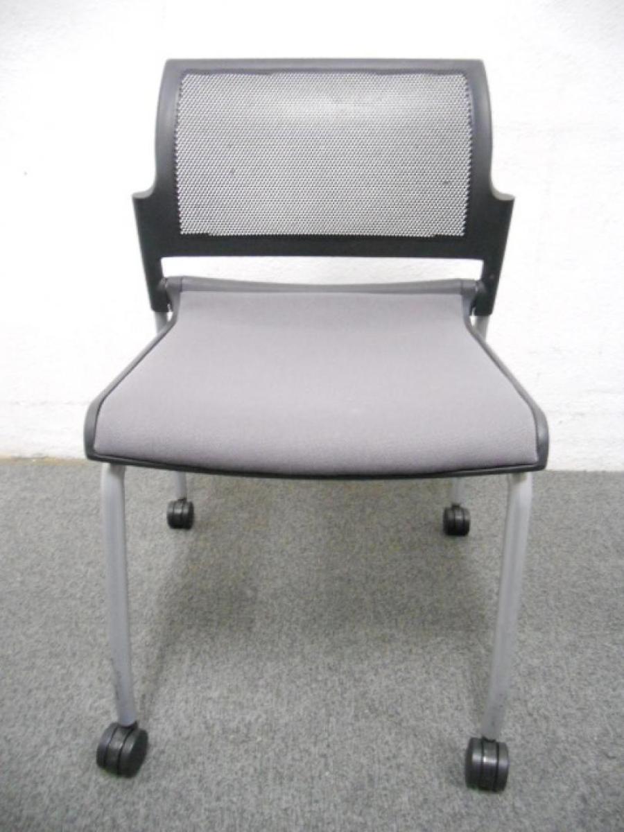 【コンパクトに収納!会議室の定番商品です!】内田洋行製 FM-310シリーズ ネスティングチェア グレー キャスター付き ※実物肘付きとなります。- 千葉店