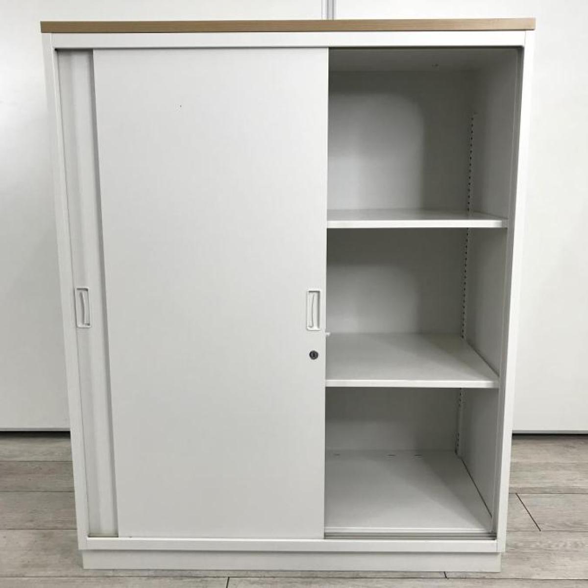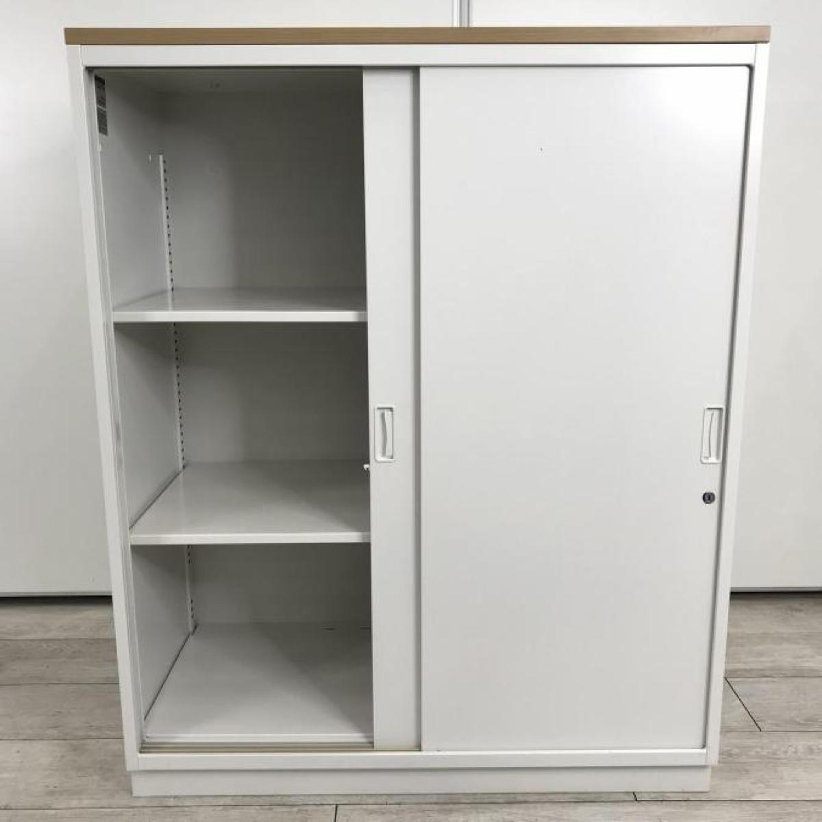 【イトーキ製の開閉スペースを確保した人気のキャビネット!】■3枚引き違いキャビネット ■イトーキ ■シンライン ■幅800mm×奥行き450mm×高さ1100mm 鍵付き書庫 オフィスバスターズ東大阪店