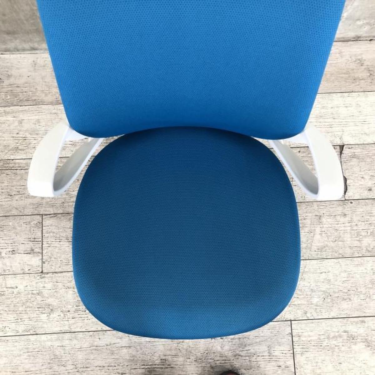 【デスクにスッキリ収納できるコンパクト設計!スマートデザインで使い勝手抜群!】■コクヨ(KOKUYO)製 ピコラ(picora)チェア 肘付き ローバック ■サークル肘 ■プルシアンブルー×ホワイトシェル×脚ブラック※背面日焼け有