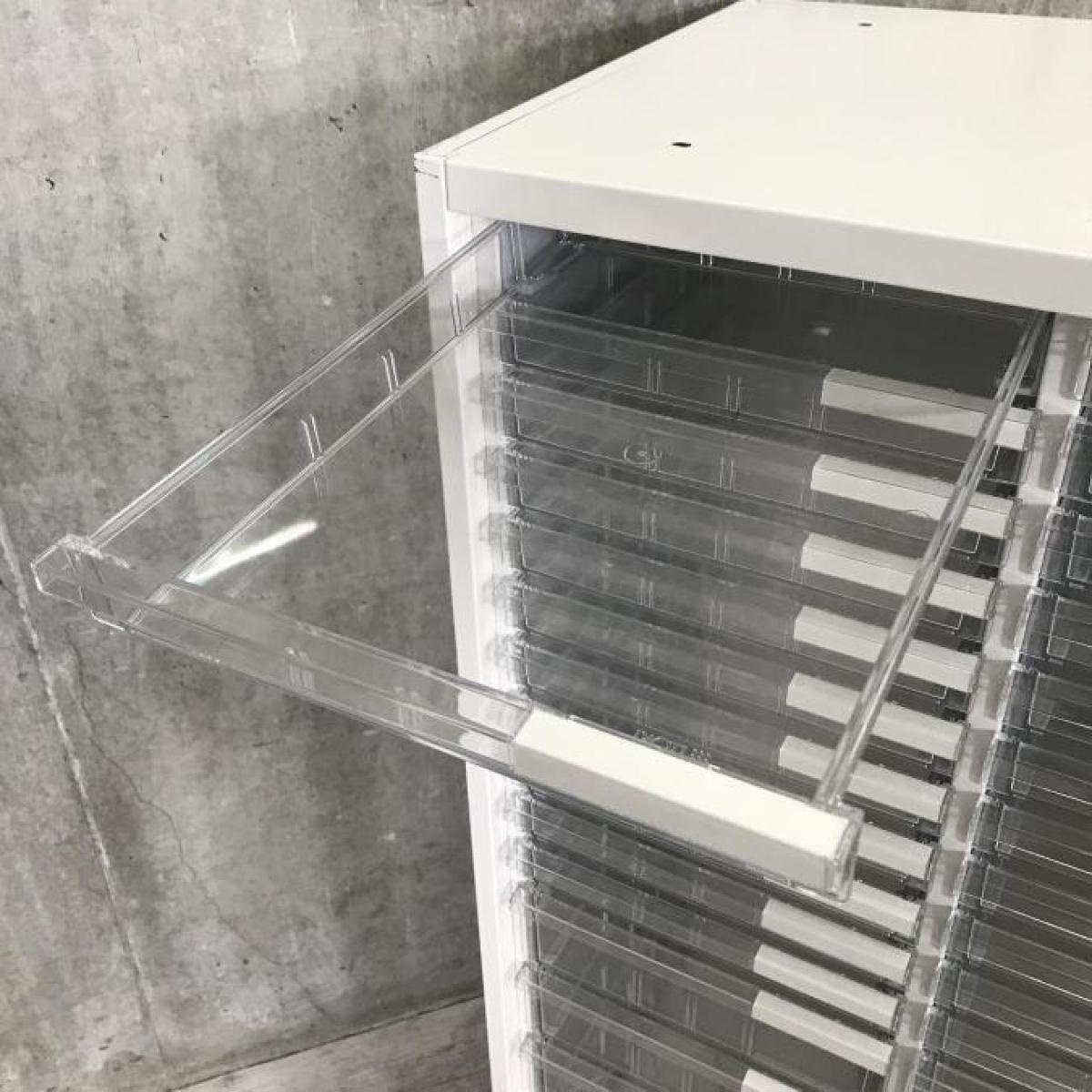 【書類・備品整理の必需品!】【珍しいクリトレが入荷!3列×浅型11段+深型5段】■イトーキ(ITOKI)製 シンラインシリーズ クリスタルトレー ローキャビネット ■3列×浅型11段+深型5段 ■天板・ベース付 ■色:ホワイト