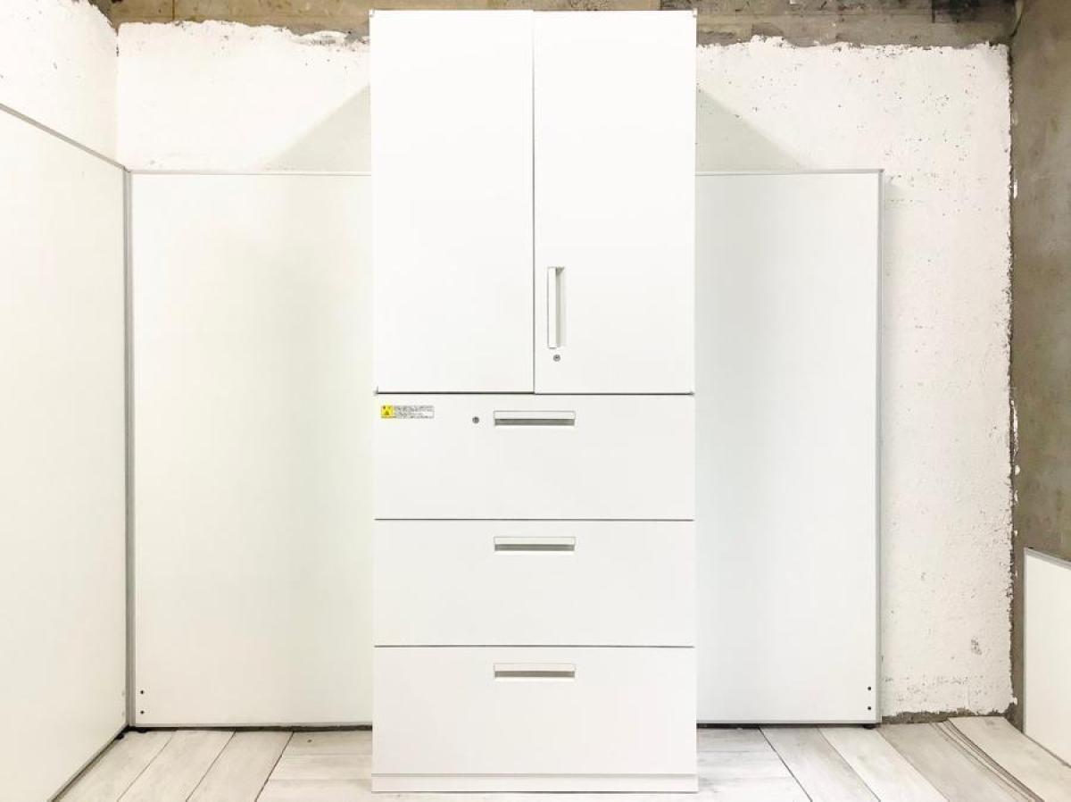 定番シリーズ!収納量抜群!観音開き+引き出しタイプのキャビネットセット! ■内田洋行/HS/ホワイト