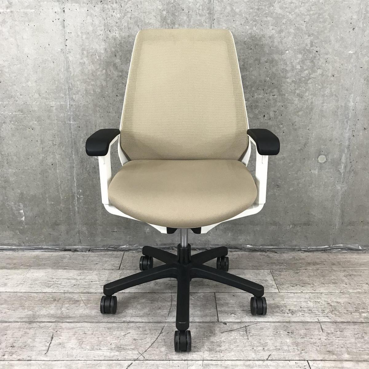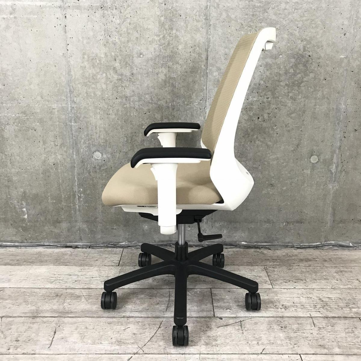 【理想的な作業姿勢をキープ!通気性も抜群な背もたれメッシュ!】■イトーキ(ITOKI)製 ノナチェア(nona) 肘付き ハイバック 背面メッシュ ■可動肘 ■サンドイエロー(ベージュ) × ホワイトシェル ※脚:ブラック- 足立・葛飾店