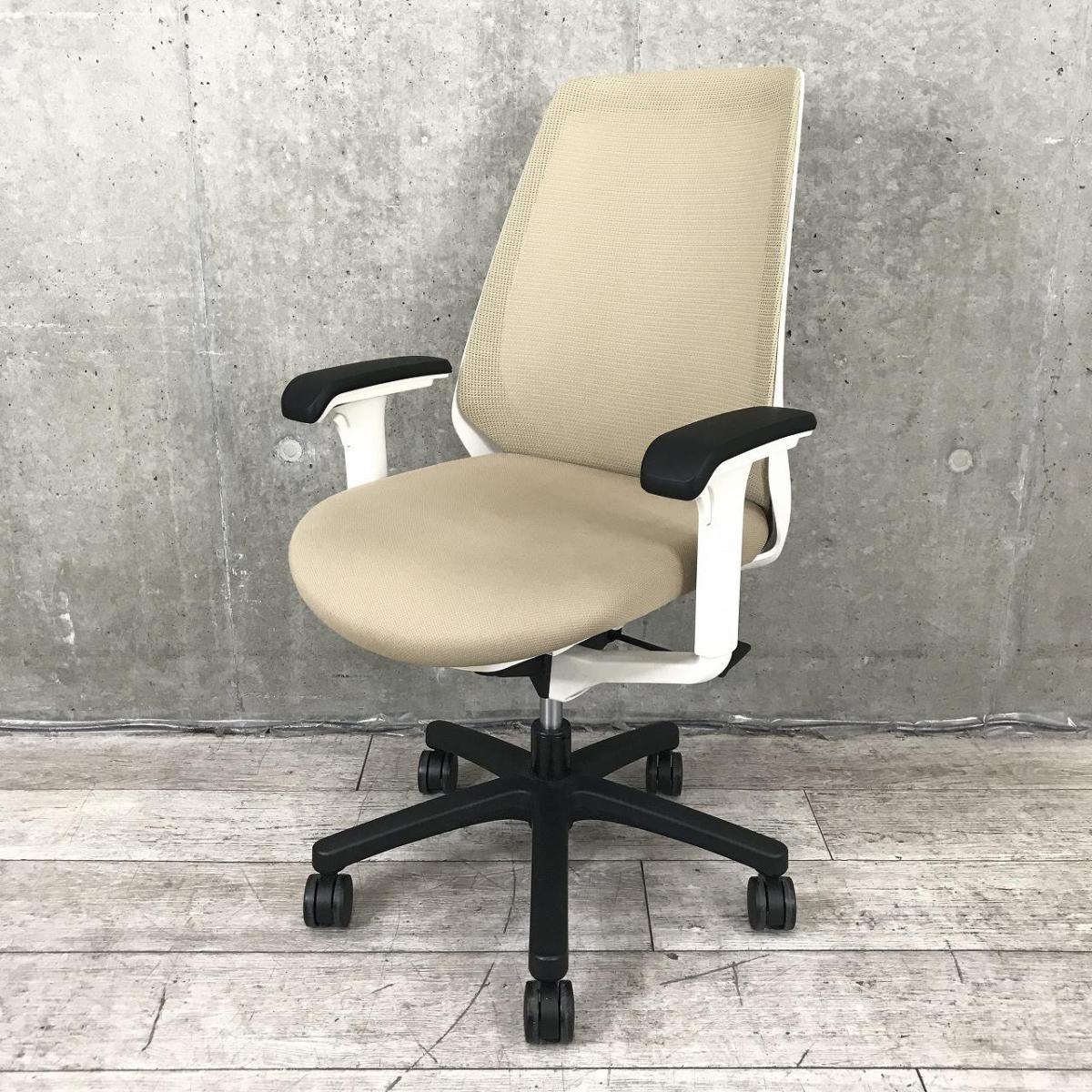 【理想的な作業姿勢をキープ!通気性も抜群な背もたれメッシュ!】■イトーキ(ITOKI)製 ノナチェア(nona) 肘付き ハイバック 背面メッシュ ■可動肘 ■サンドイエロー(ベージュ) × ホワイトシェル ※脚:ブラック【K8】