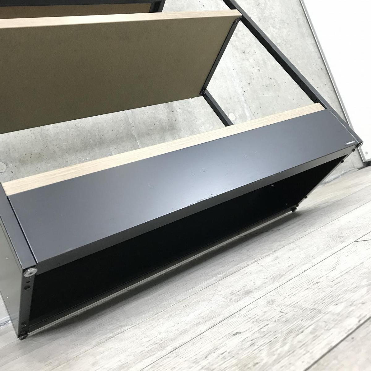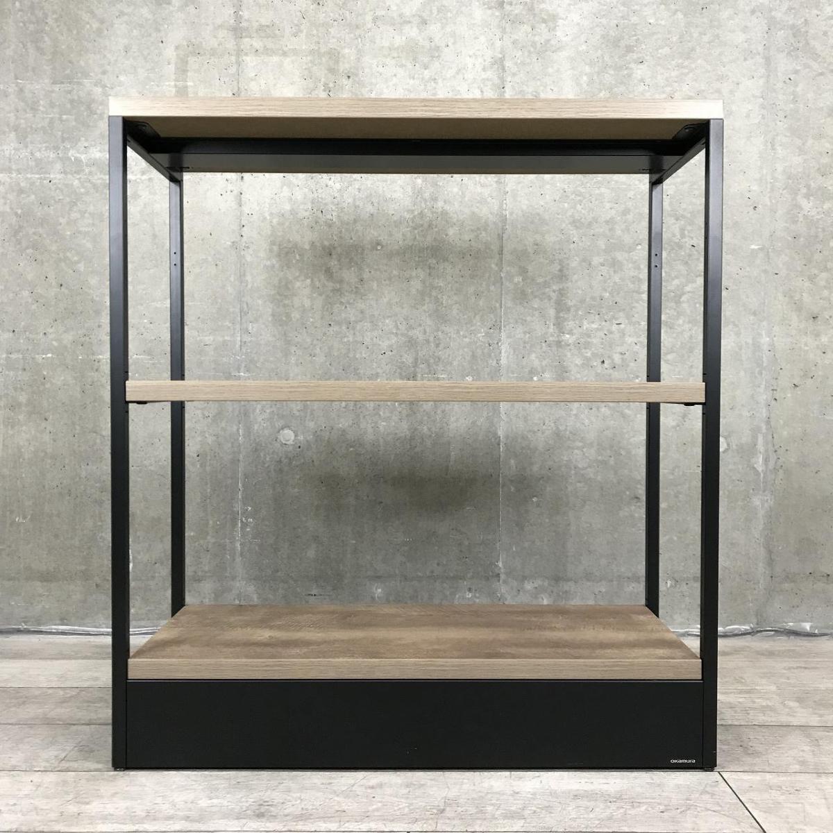 【物を置くことはもちろん、空間をさりげなく仕切るパーテーションとなるシェルフです!】■オカムラ(Okamura) ライブスシェルフ(Lives Shelf) スチールラック 収納棚 ■W900×D350×H1000㎜ ■フレーム:ブラック 棚板:ラスティックパイン(木目調) 【ABW商材】【関東倉庫在庫品】【弊社使用欄:A01007800】- 全店共通商品