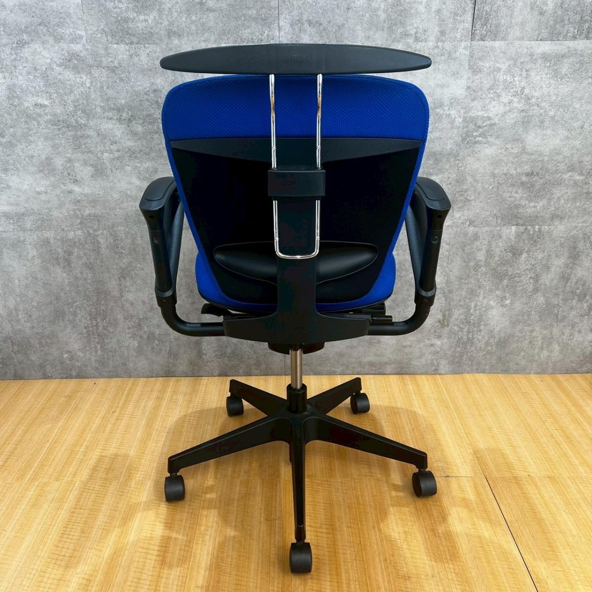 【一人ひとりにマッチする座り心地!姿勢の変化にフレキシブルに対応!】■イトーキ製 プラオ 肘付ローバックチェア ■サークル肘 ■背面ストロングブルーブルー&座面ブラック