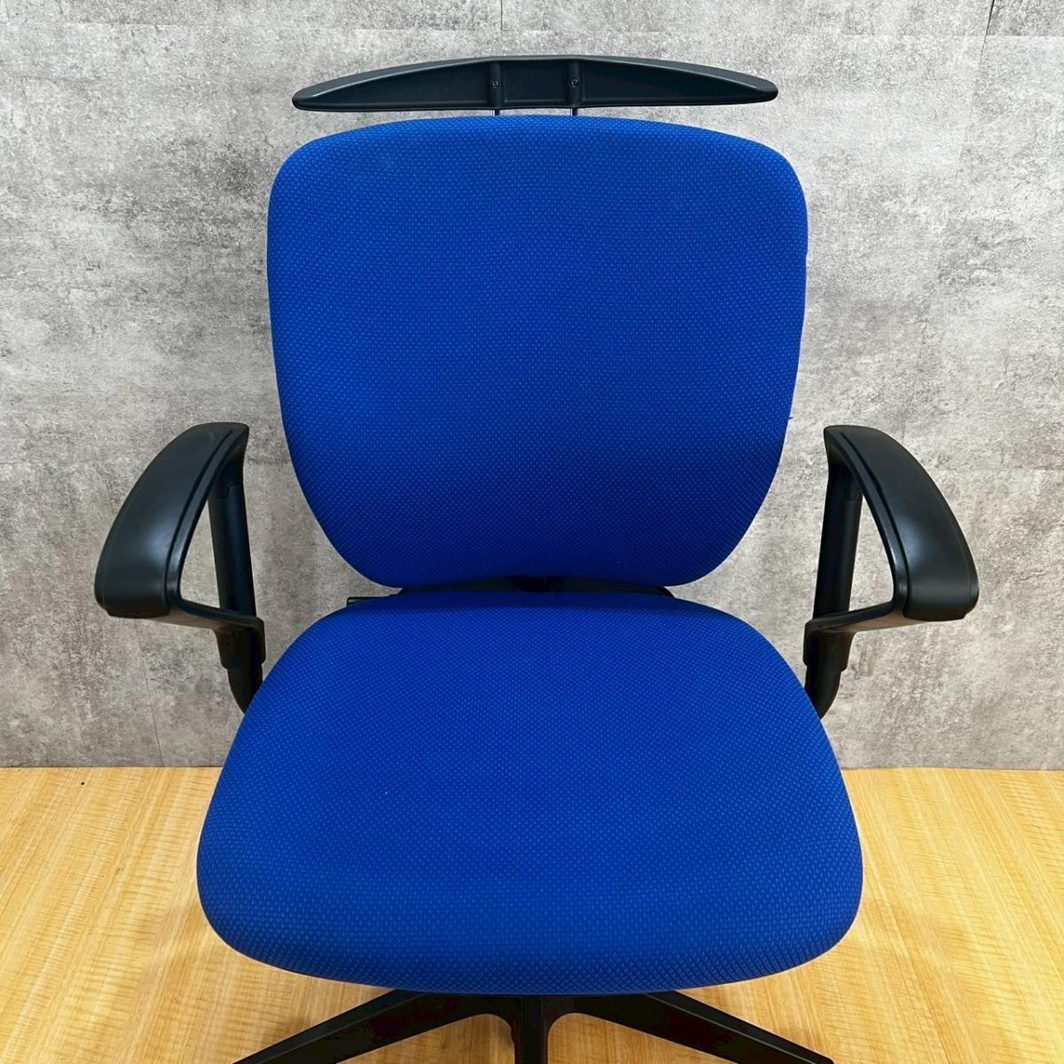 【一人ひとりにマッチする座り心地!ミドルクラスの定番チェア!】■イトーキ(ITOKI)製 プラオ(PRAO)チェア 肘付ローバック ■ストロングブルー ×ブラックシェル ■サークル肘 ■ランバーサポート付き ■防炎生地