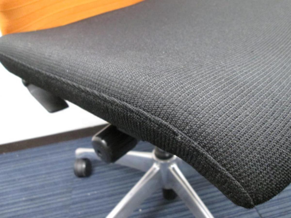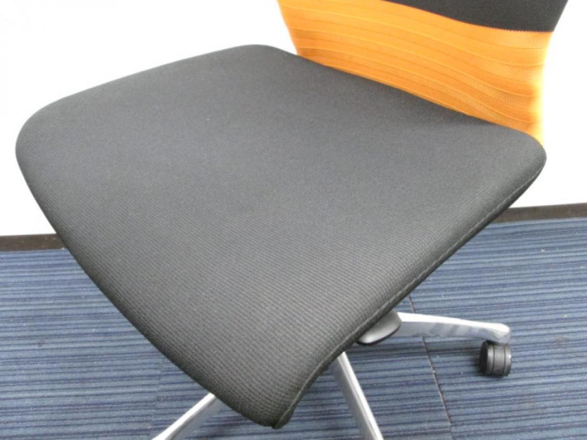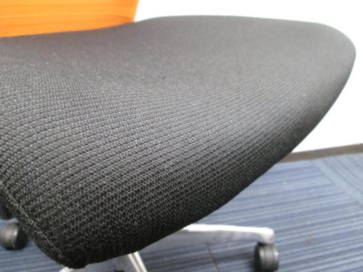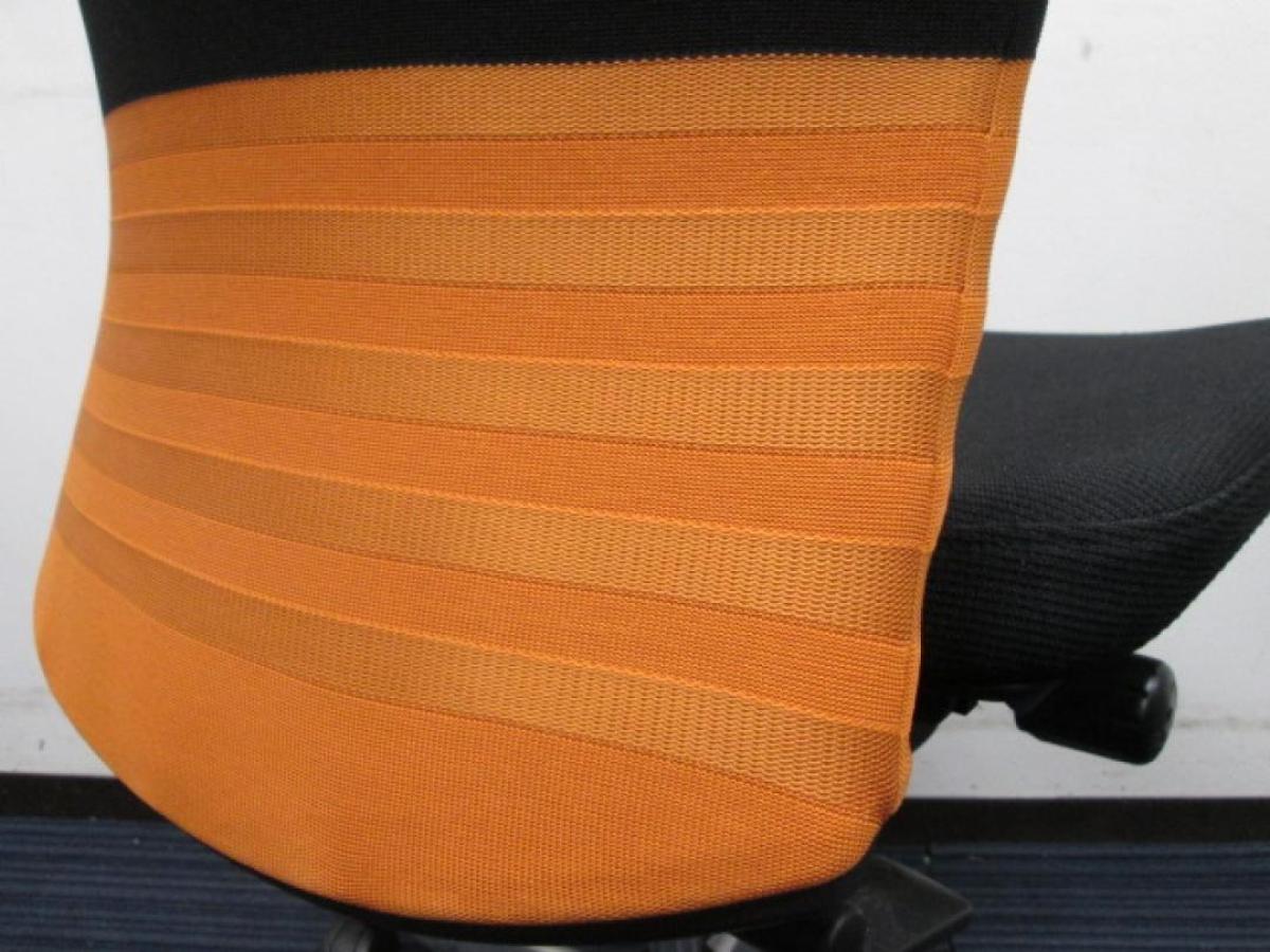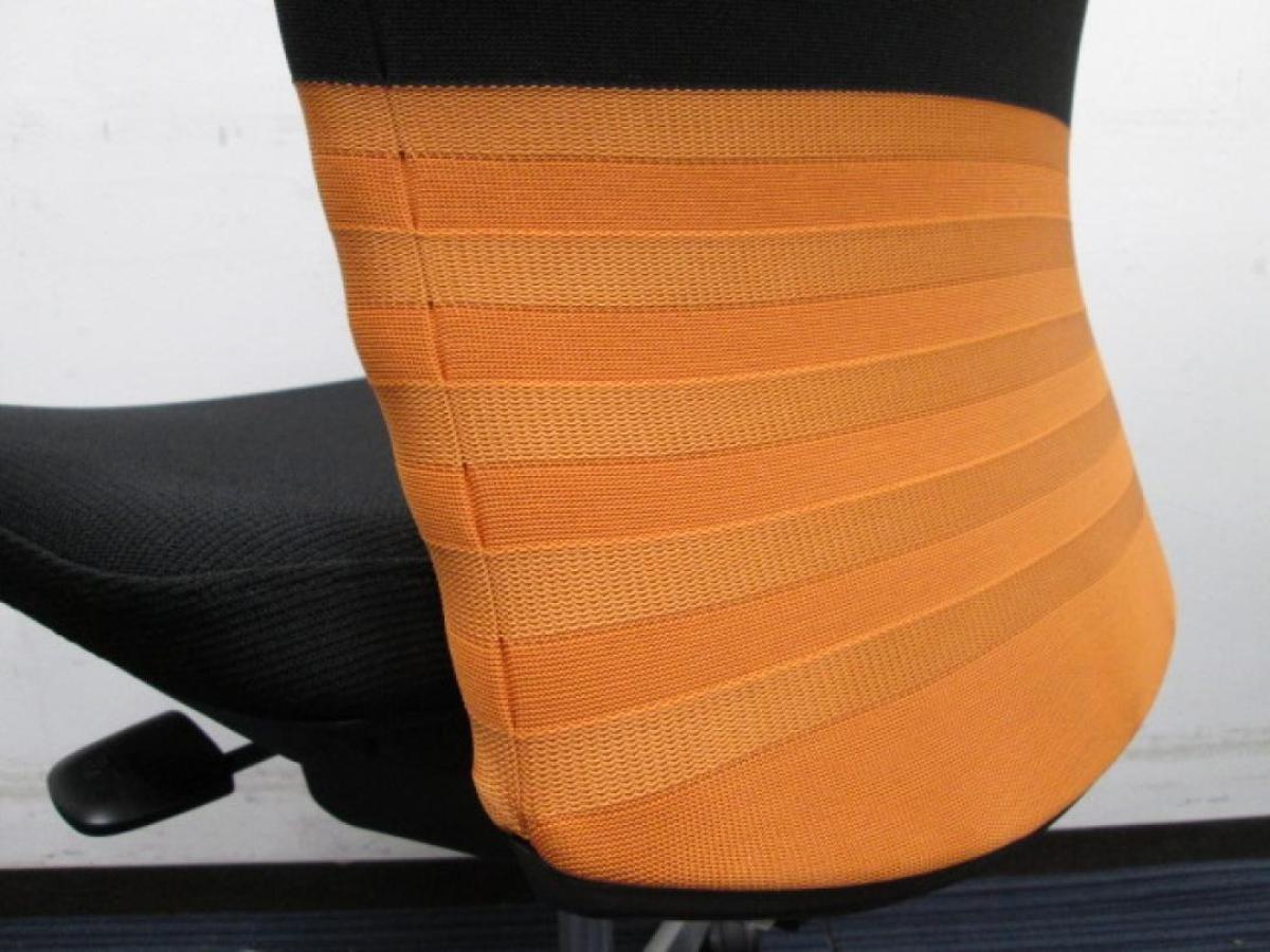 【人間工学に基づいた快適な座り心地!背あてのしなやかな曲線が背中にフィット!】■オカムラ製 フィーゴチェア (feego) 肘無ミドルバック シームレスタイプ ■肘無 ■ブラック×オレンジ ※コートハンガー外し跡のある商品となります。【入替セールにつき30%OFF!】