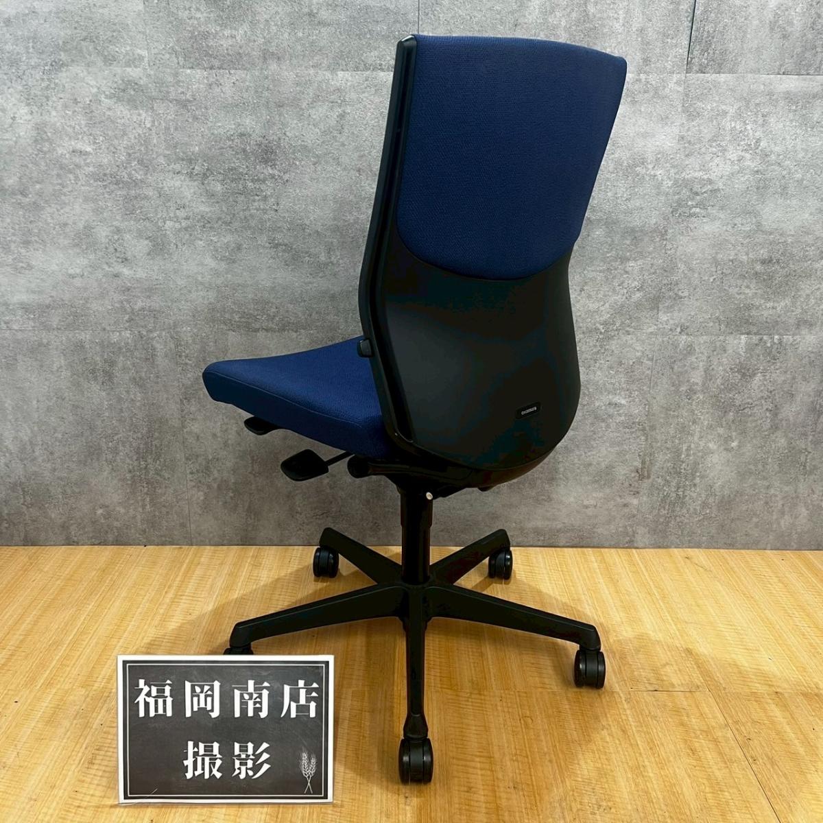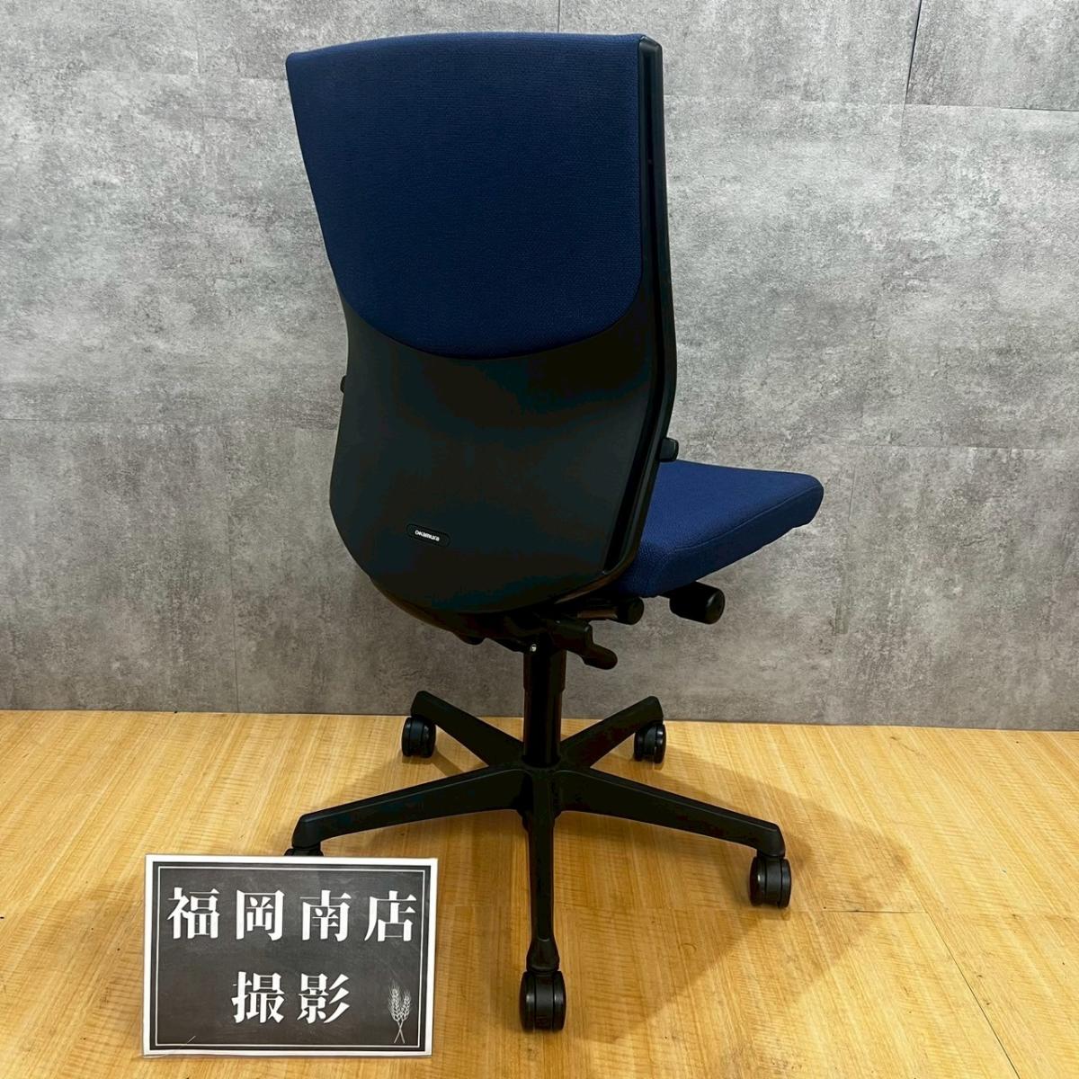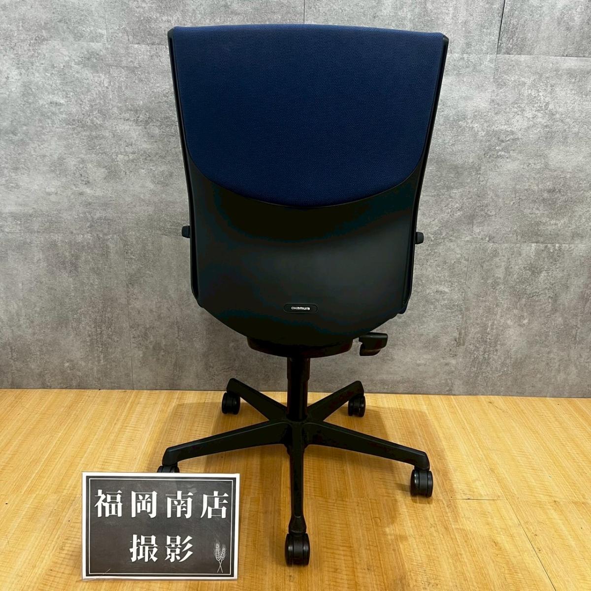 【人気チェア!肘無仕様でタイトにゆったり座れます!】オカムラ エスクード 肘無 ハイバック ネイビーブルー グレーシェル 人気 中古 福岡 九州最大級《オフィスバスターズ福岡博多店は、福岡を拠点として、日本全国へ中古オフィス用品・オフィス家具を提供しております》