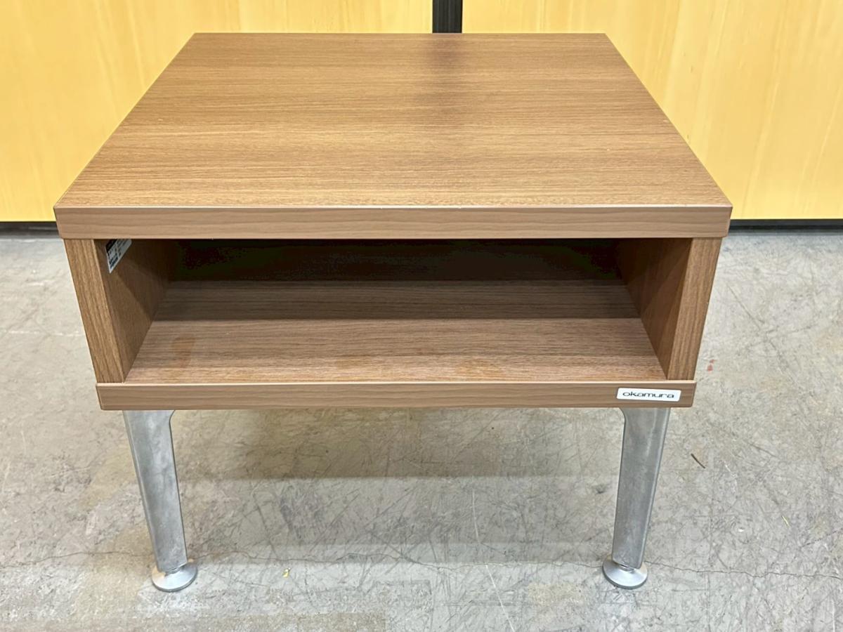 【小さな物を置ける小物台!】■オカムラ製 電話・プリンター台 W450サイズ角型 ■天板:木目ブラウン【弊社使用欄:A01006805】- 在庫数