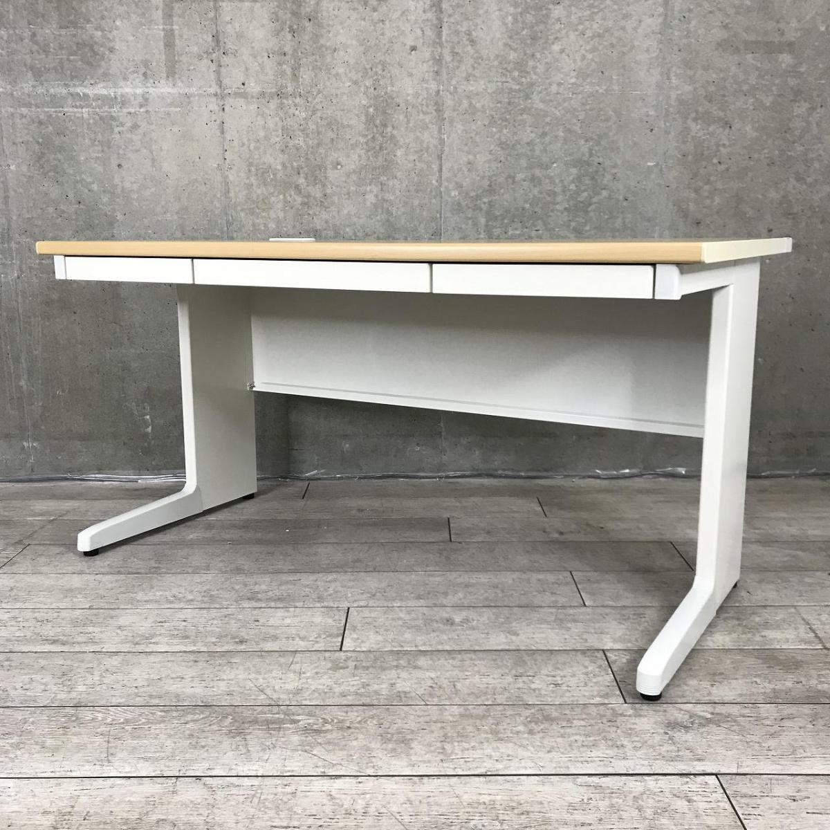 【在庫入替セール品】【ゆとりのあるワークスペースで作業効率アップ!使いやすさを追究したデザイン!】■平デスク 引き出し付 ■天板:木目ナチュラル/脚:L字ホワイト ■W1400×D700mm 【弊社使用欄:A00996773】- 在庫数