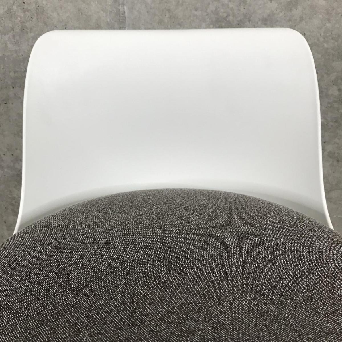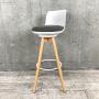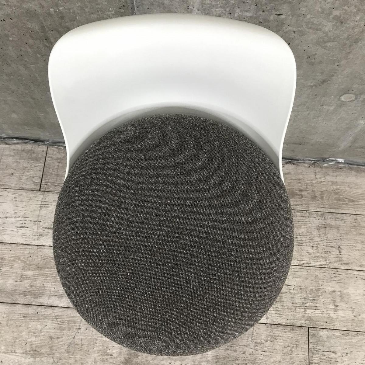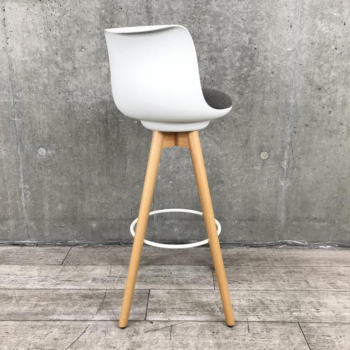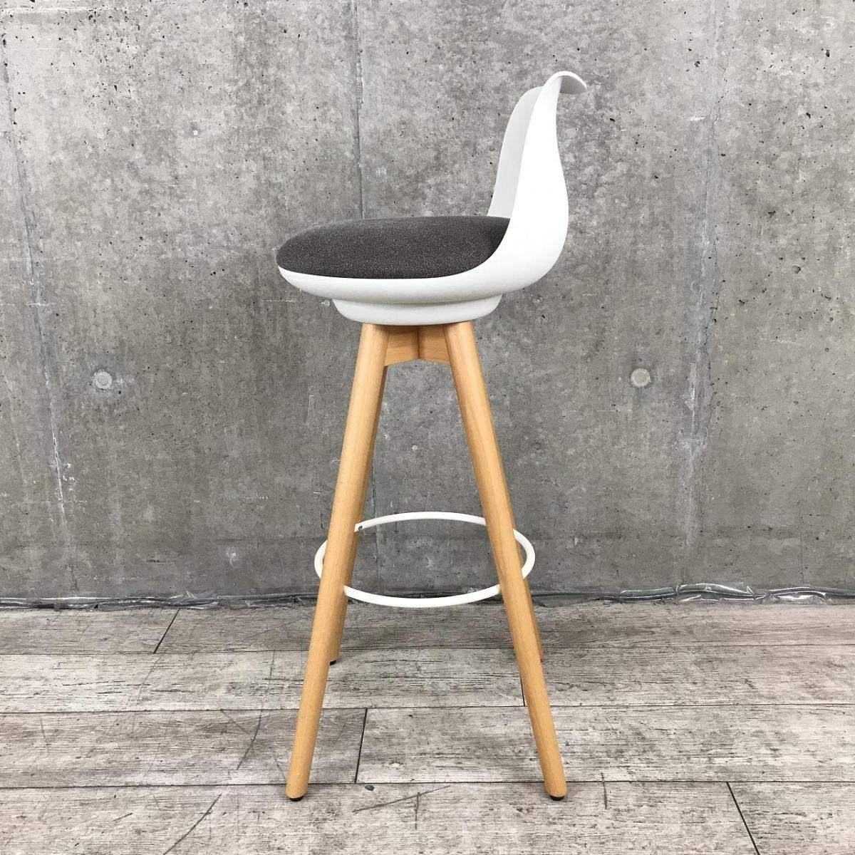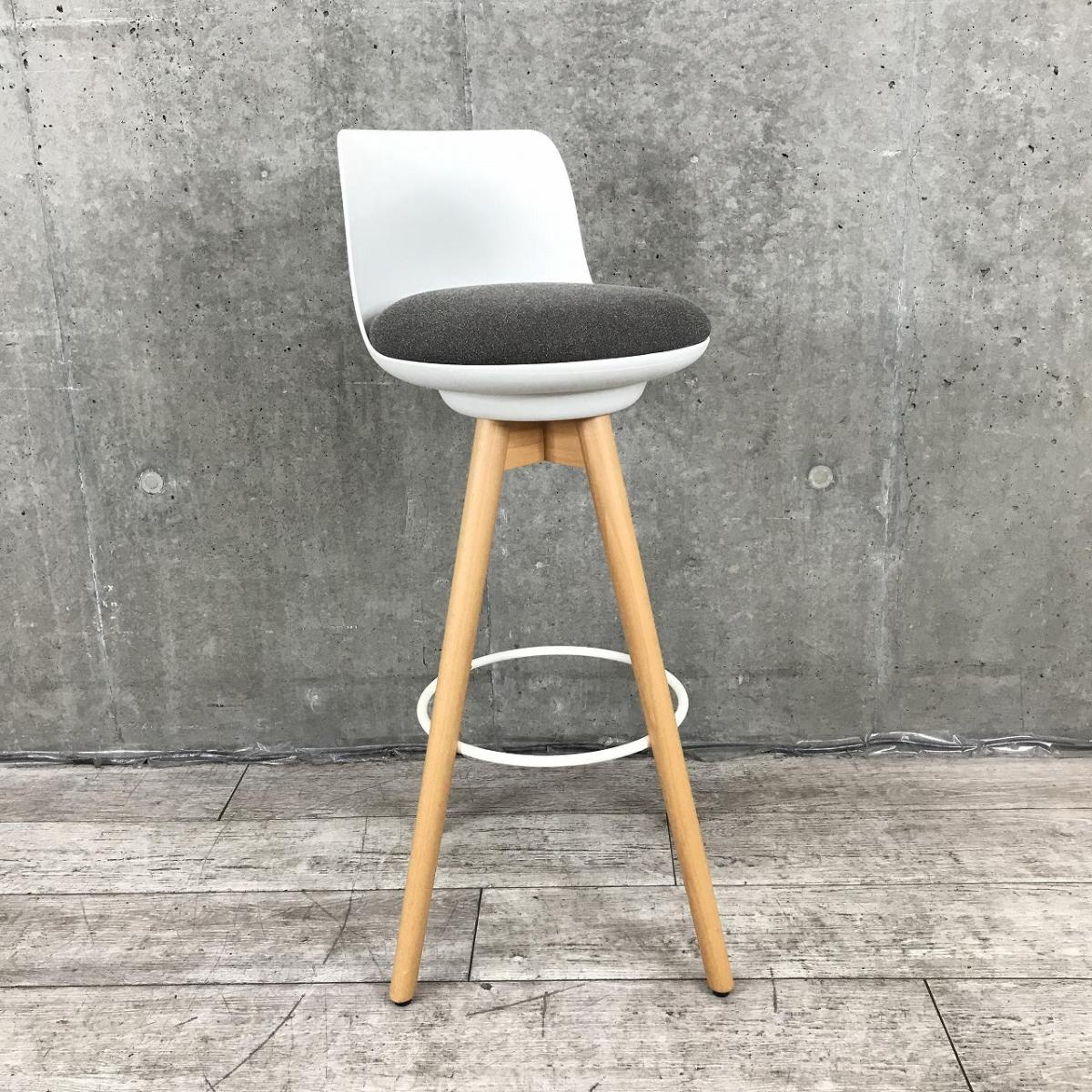 【ファブリック性の座面と木製の脚がオシャレな空間を演出!】■オカムラ(okamura)製 ピルエットシリーズ カウンターチェア ハイチェア リフレッシュスペース ■シェル:ホワイト/座面:グレー ■足置き付- 茨城南店
