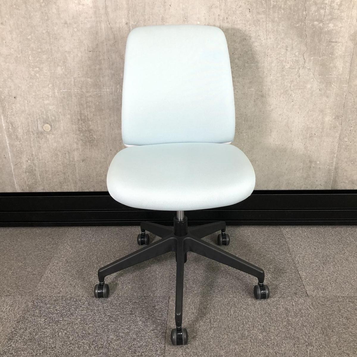 【2022年製】【休憩スペースの雰囲気を明るく! ベーシックなオフィスチェアーが入荷!!】■コクヨ(KOKUYO) エルア(Elua)チェア 肘無 ローバック ■ライトブルー【入替セールにつき30%OFF!】- つくば店