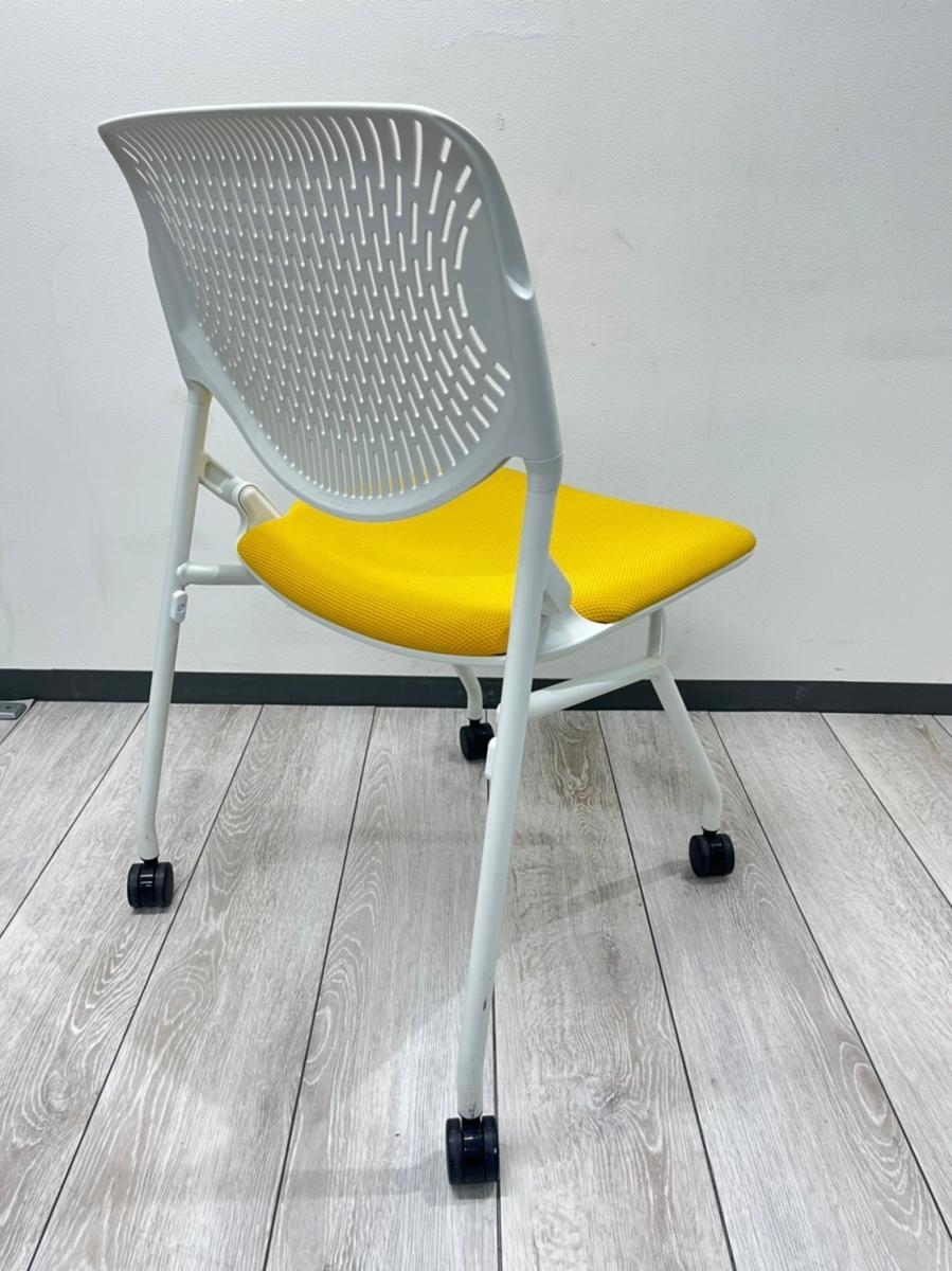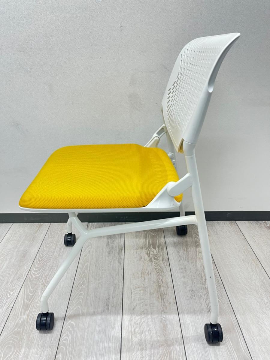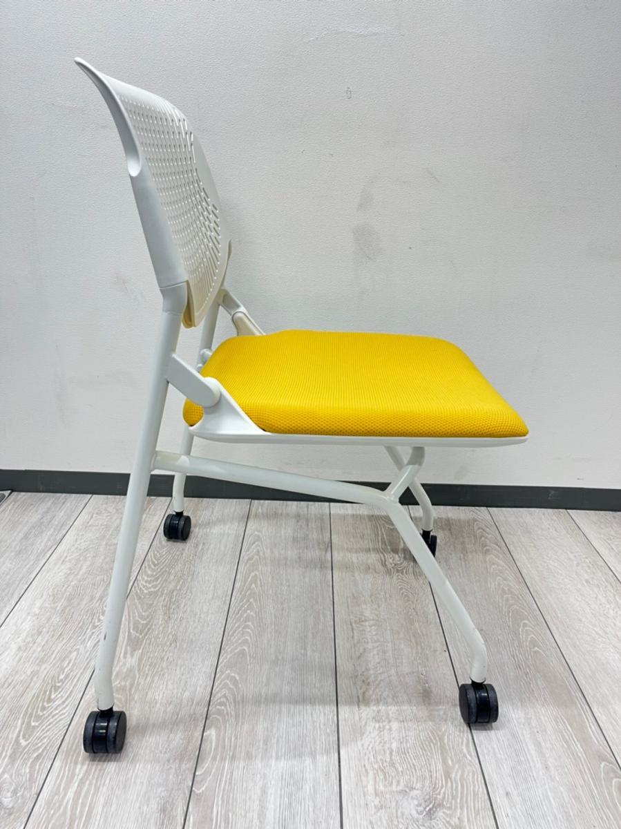 【明るいカラーで人気!使わない時は畳んでコンパクトに収納!会議室にもおススメ!】■オカムラ(okamura) ルナ(Runa) ネスティングチェア ミーティングチェア ■背パッド無し キャスター付き ■座面イエロー×背面ホワイト【入替セールにつき40%OFF!】サーキュラーバリューCO2削減量の算出について