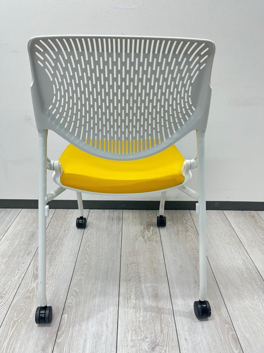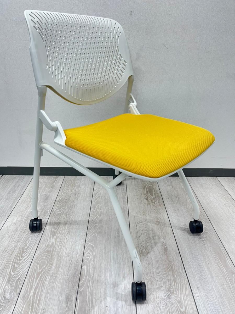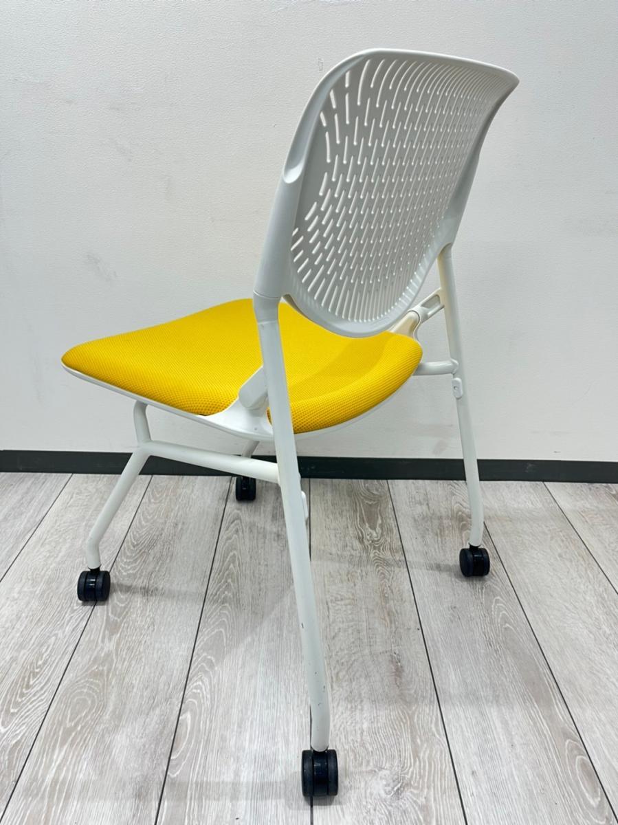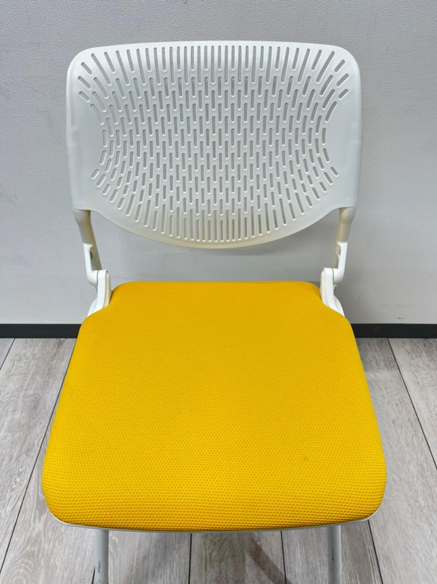 【明るいカラーで人気!使わない時は畳んでコンパクトに収納!会議室にもおススメ!】■オカムラ(okamura) ルナ(Runa) ネスティングチェア ミーティングチェア ■背パッド無し キャスター付き ■座面イエロー×背面ホワイト【入替セールにつき40%OFF!】サーキュラーバリューCO2削減量の算出について