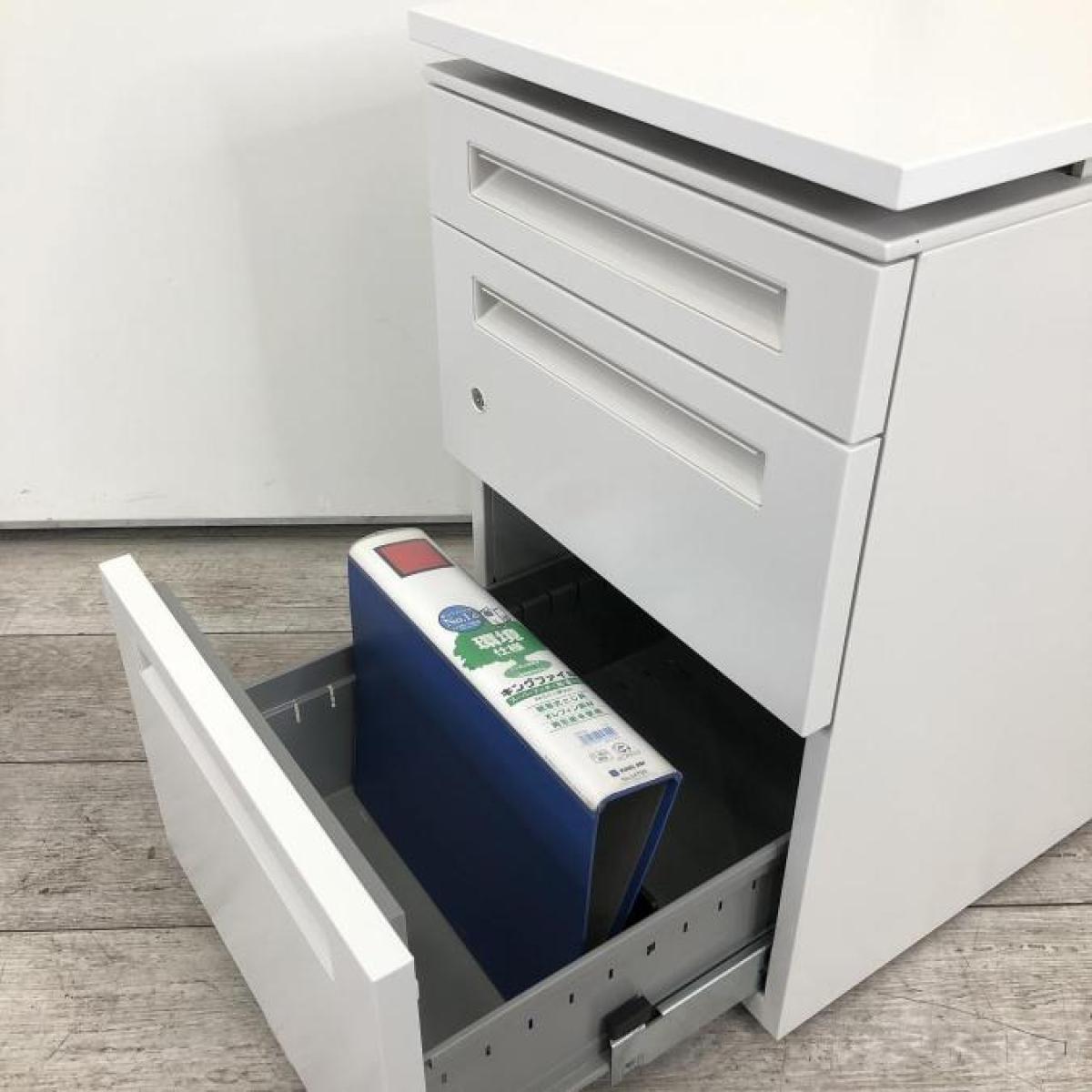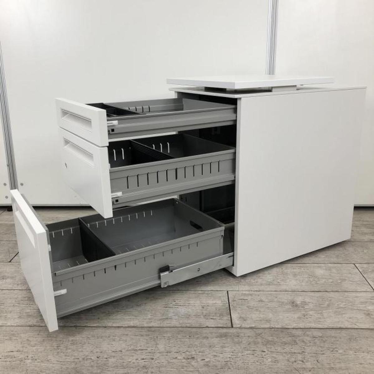 【上下昇降の天板付き!収納とワークスペースが拡張出来る!】■ウチダ (UCHIDA) STワゴン 3段ワゴン H640mm ■ホワイト シリンダー錠【入替セールにつき40%OFF!】- つくば店