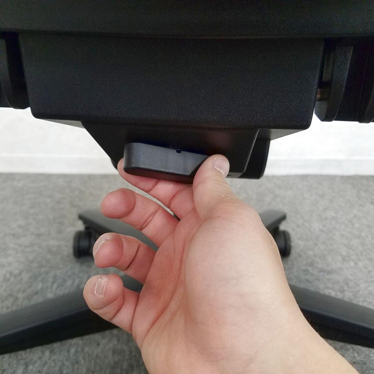 (ファブリック) - レバーを上下させることで、内蔵されたランバーサポートプレートの押し出し量を2段階(15㎜)切り替えることができます。
