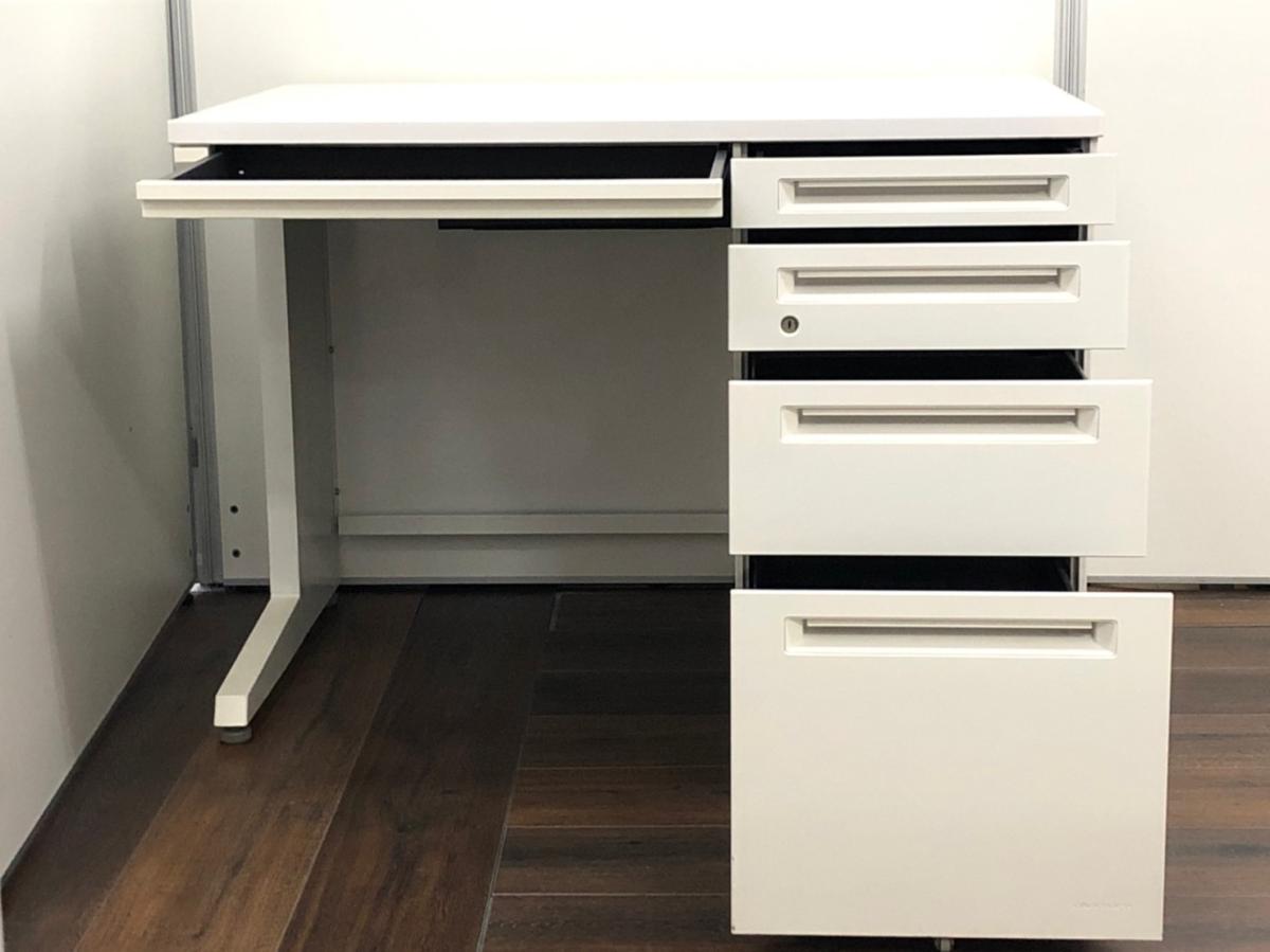 【T11】【商品入替のため、残り6台限り】オカムラ製 アドバンシシリーズ ホワイトカラー 4段収納で整理も完璧! コンパクトで清潔感のあるオフィス W1000片袖机!!