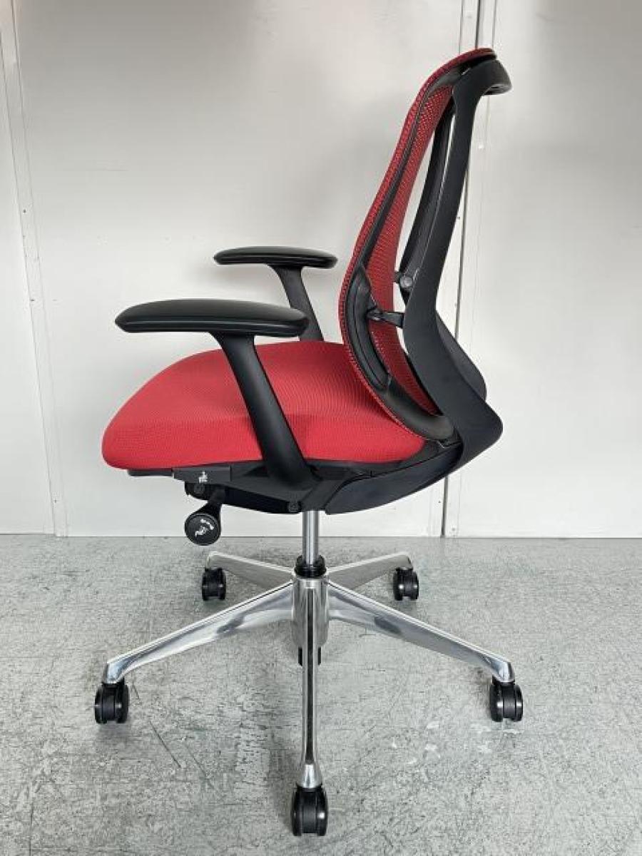 【前傾チルト機能付き】【オカムラ製品で最も人気を集める高機能メッシュチェア!】■オカムラ(okamura)製 シルフィ(Sylphy) ローバック 肘付き 背面メッシュ ■固定肘 ■レッド × ブラックシェル オフィスバスターズ心斎橋店サーキュラーバリューCO2削減量の算出について