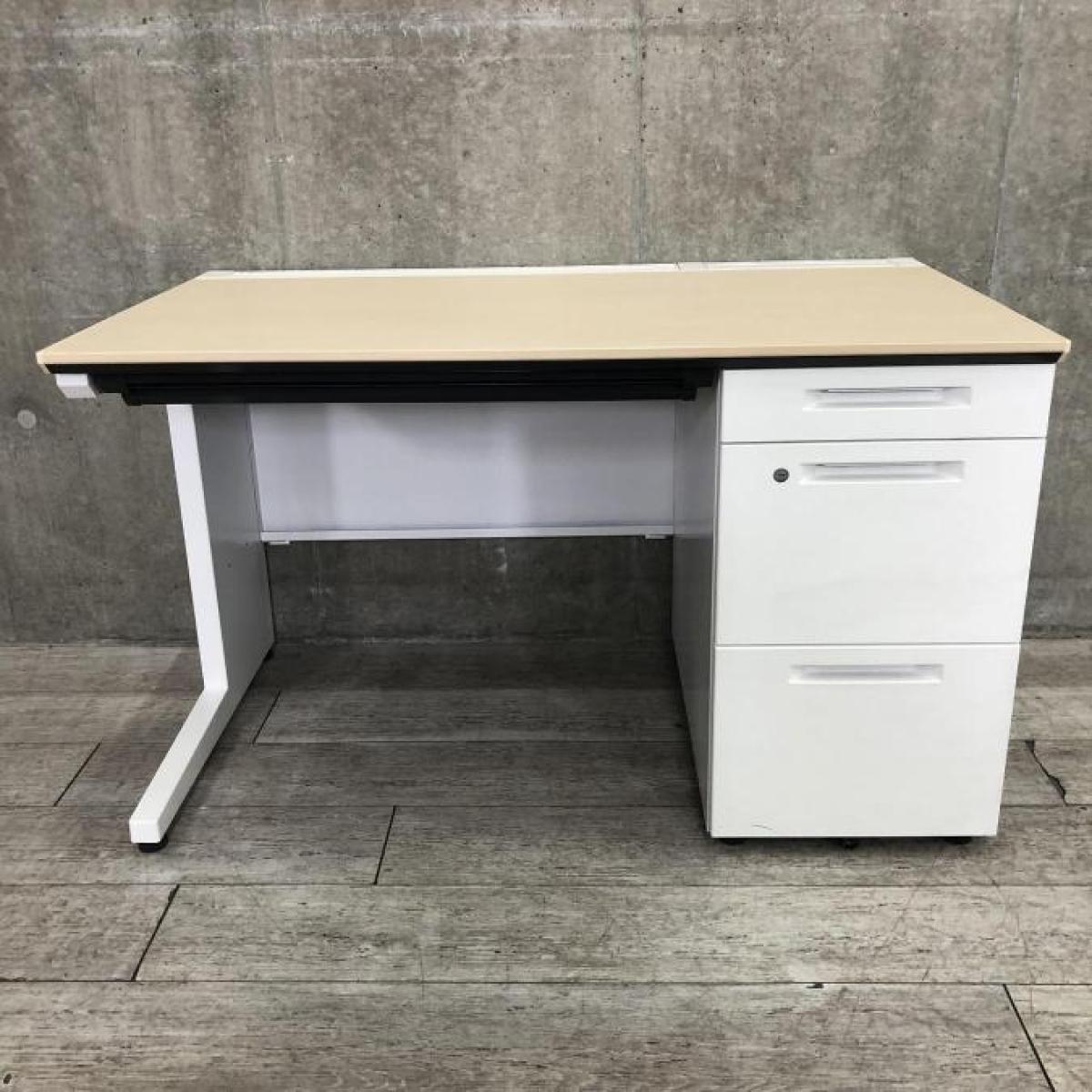 【幅1100mmが使いやすい!ナチュラル色天板が人気!】■コクヨ(KOKUYO)製 アイエス(iS)シリーズ 片袖机 W1100mm ■天板:木目ナチュラル(明るめ) ■シリンダー錠 【ちょいと明るめカラー!】