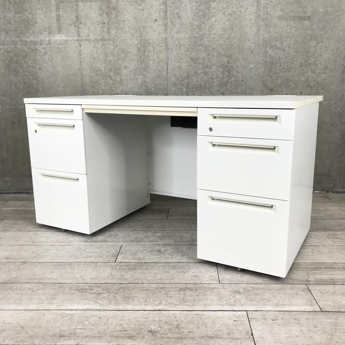 定番/大人気/希少 オカムラ(okamura)製 アドバンス 両袖机 幅1400㎜ ■ホワイト ■シリンダー錠