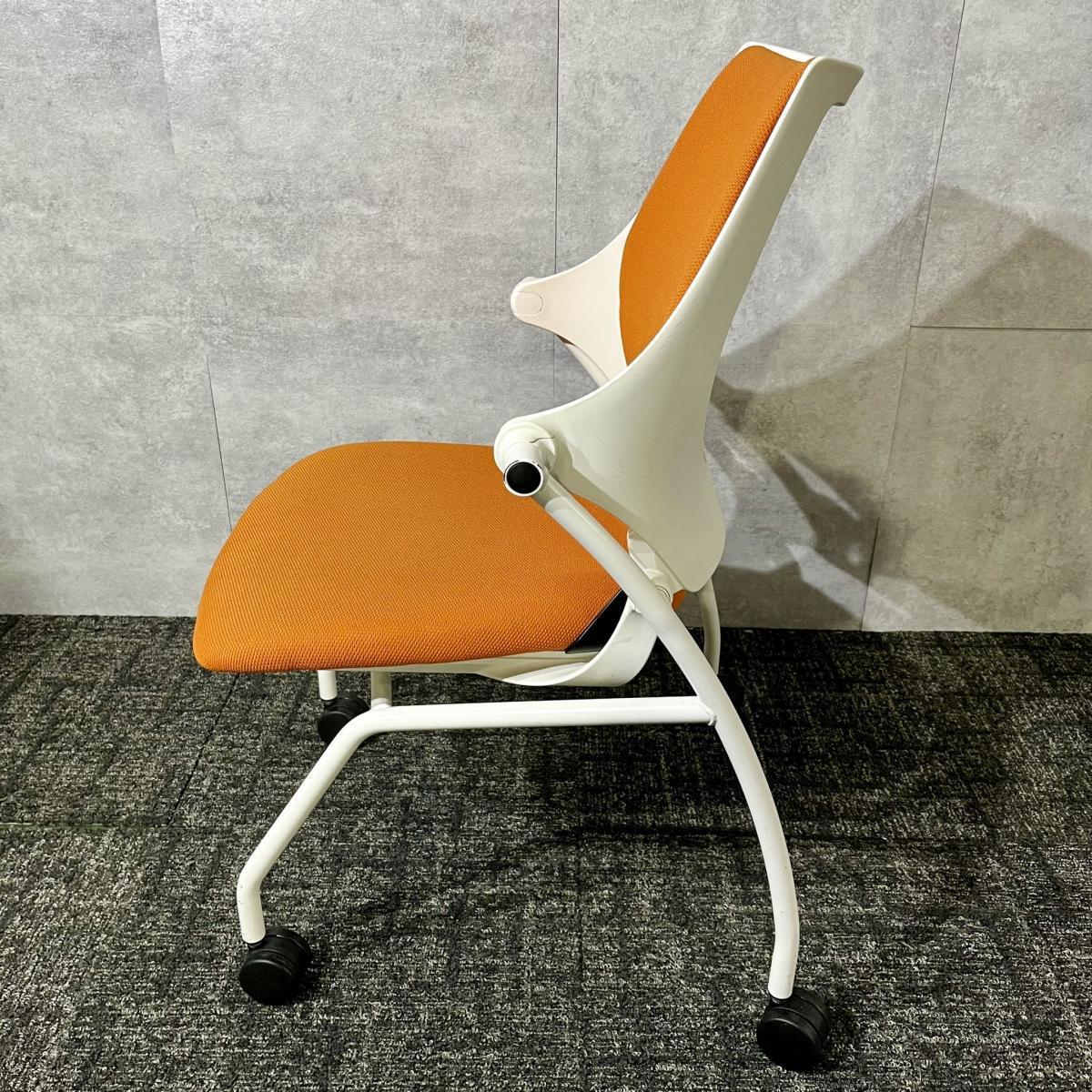 【在庫セール品・4脚限定】【T9】■イトーキ(ITOKI)製 イプサ(ipsa)シリーズ 肘無ネスティングチェア キャスター付 ■アンバーオレンジ × ホワイトシェル【ビタミンカラーではかどるミーティング!平行スタックで省スペース!】- 新大阪店