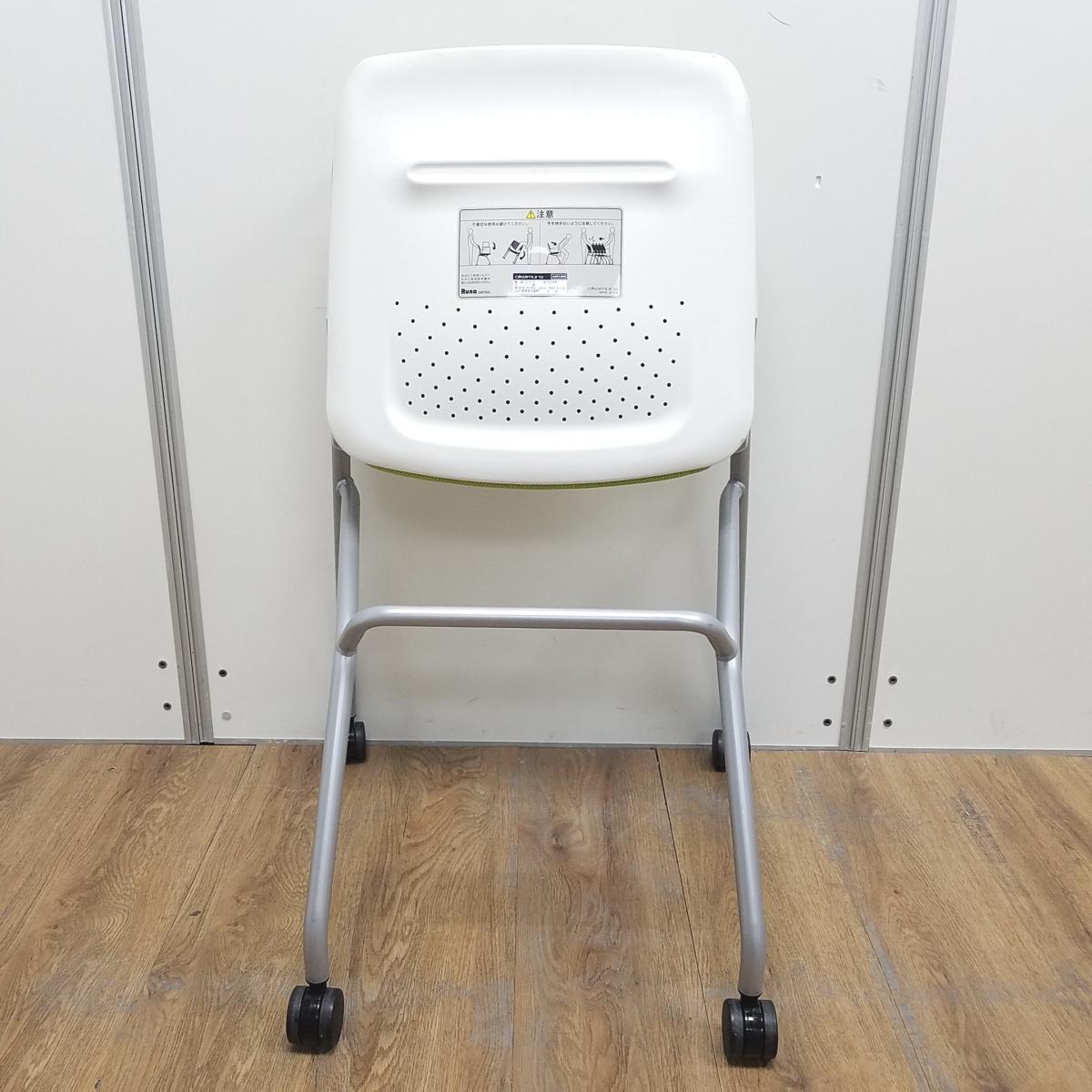 【T11】【T10】【商品入替のため、残り6脚限り】オカムラ製 ルナシリーズ ライムグリーン ホワイトフレーム 軽快なデザインが人気 ネスティングチェア!!