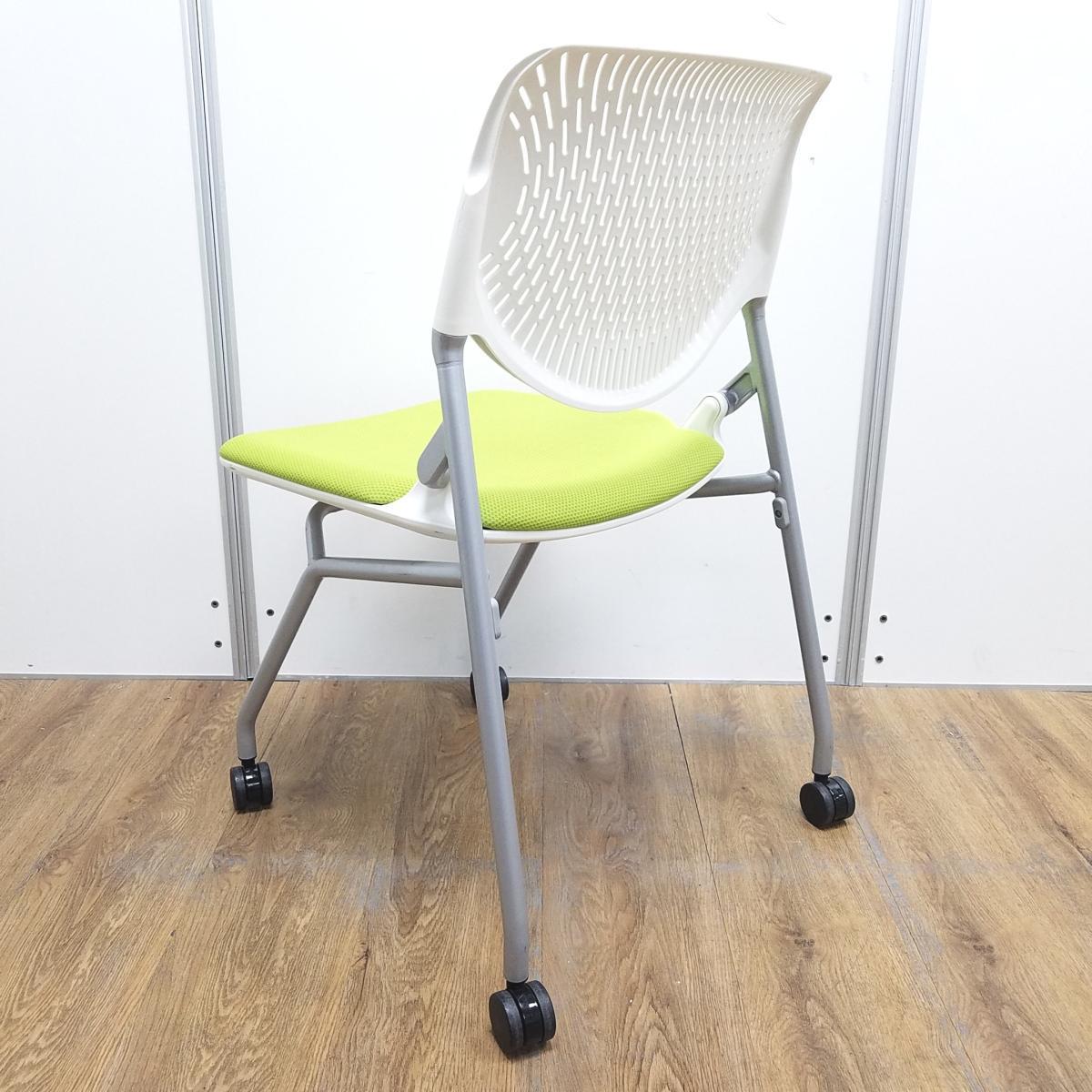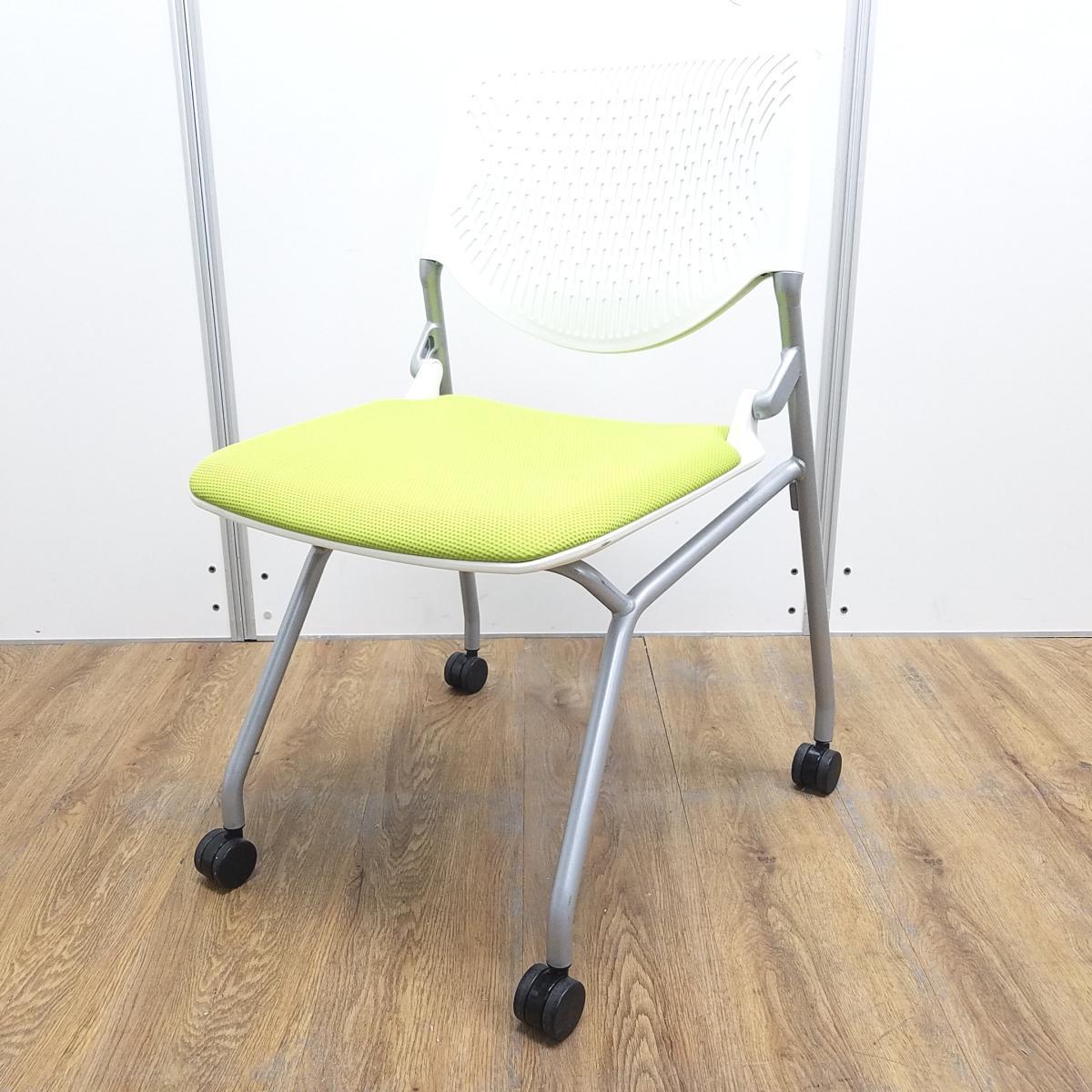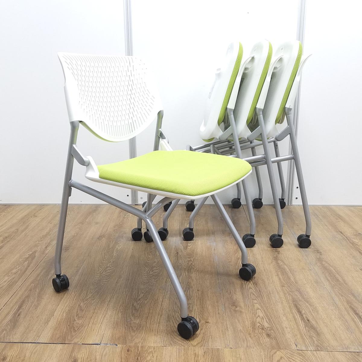 【在庫入替セール品!】【軽快なデザインが人気 ネスティングチェア!!】/オススメ(おすすめ) /人気商品【弊社使用欄:A01011607】■ライムグリーン ホワイトフレーム/オカムラ/ルナ- 池袋店