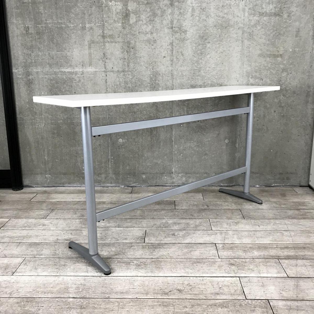 【在庫セール品・2台限定】■パブリック製 ミーティングテーブル 角テーブル ハイテーブル W1800×D450×H950mm ■天板:ホワイト T字脚:シルバー 【オフィスの雰囲気ががらりと変わる!高さ950mmのハイテーブル!!】- 新大阪店