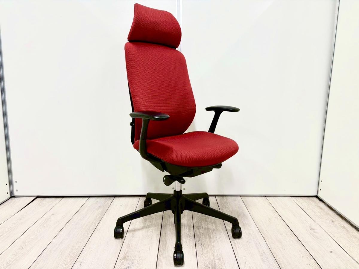 【1脚限定】大人気商品のヘッドレスト付きが入荷!前傾機能付きで長時間のデスクワークにもおすすめの逸品! ■オカムラ/シルフィー(Sylphy)/レッド ブラックフレーム エクストラハイバック 固定肘【弊社使用欄:A01011455】サーキュラーバリューCO2削減量の算出について