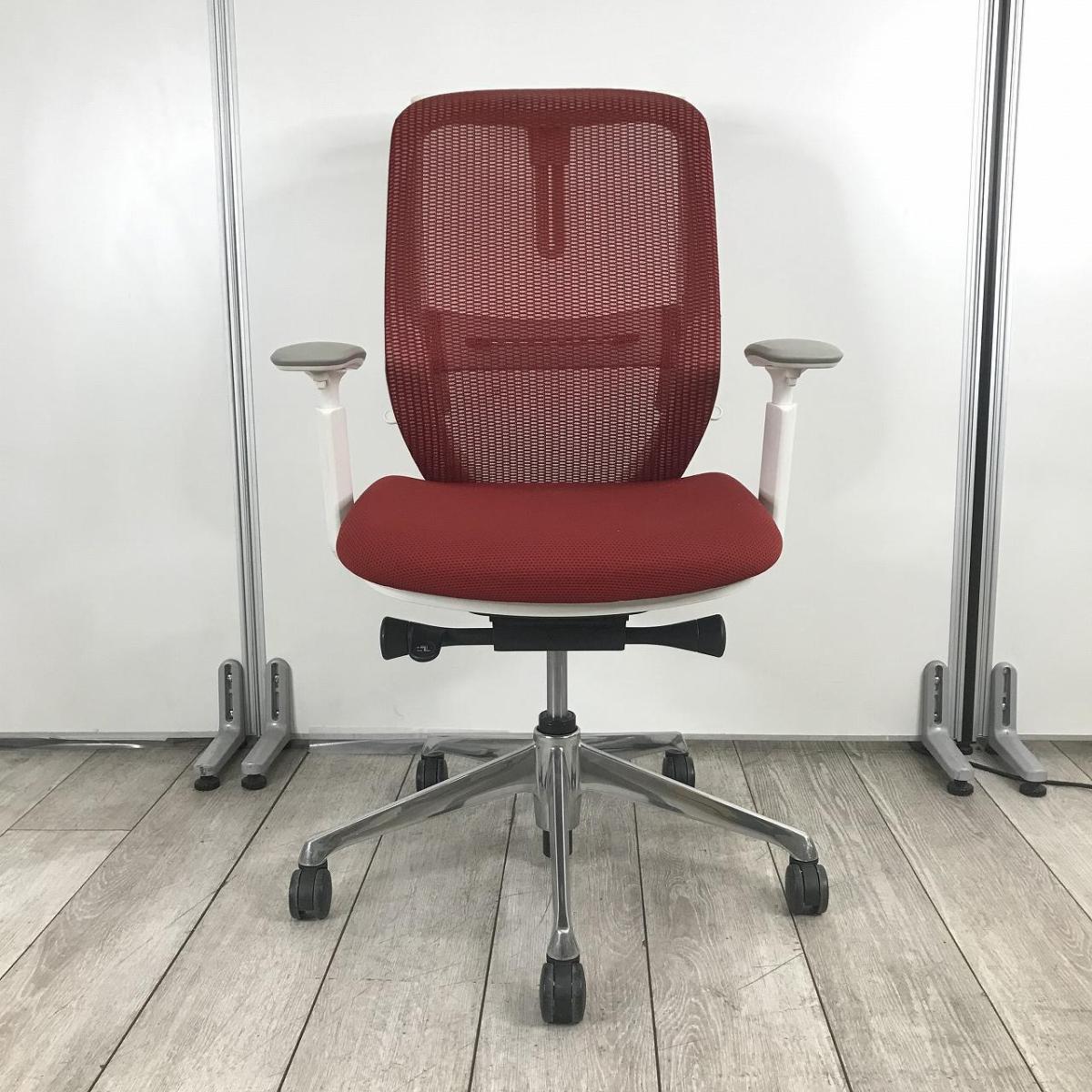 オカムラ シルフィー ハイバックモデル デザインアーム(固定肘) レッド×ホワイトフレーム 前景機能付きの人気シリーズ 在宅ワークにも最適