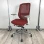 【大手町・神田サテライトCP】【三次元曲面が快適にフィット!!前傾チルト機能付の大人気メッシュチェア!】■オカムラ(okamura)製 シルフィー(Sylphy) 肘付き ハイバック ■メッシュバック ■可動肘 レッド/ フレーム色:ホワイト