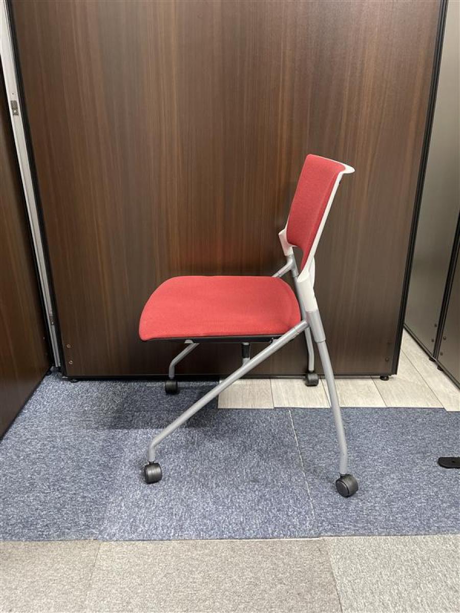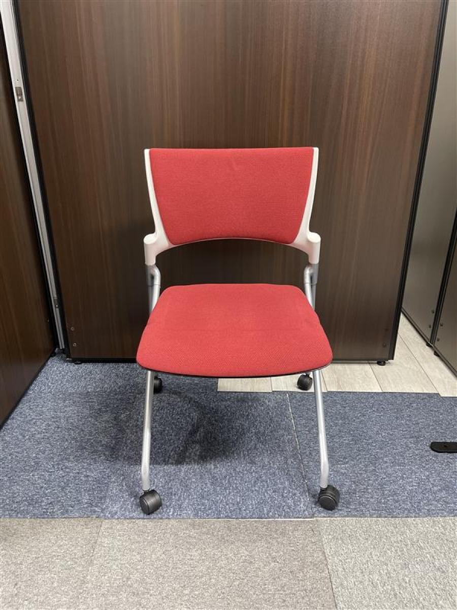 【在庫セール品・3脚限定】■イトーキ製 マノスチェア(MANOSS) 肘無ネスティングチェア ■レッド ■キャスター付 ■背パッド付 【ネスティングして省スペース!落ち着いたグリーン!】- 新大阪店
