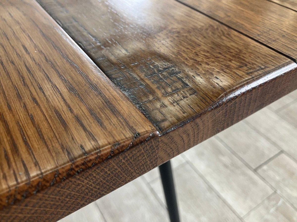 - 目立つ箇所あり傷・凹みが多数、深い傷・凹みが一部ある。(例、天板、幕板、棚板、サイド部分、脚部等にある。)