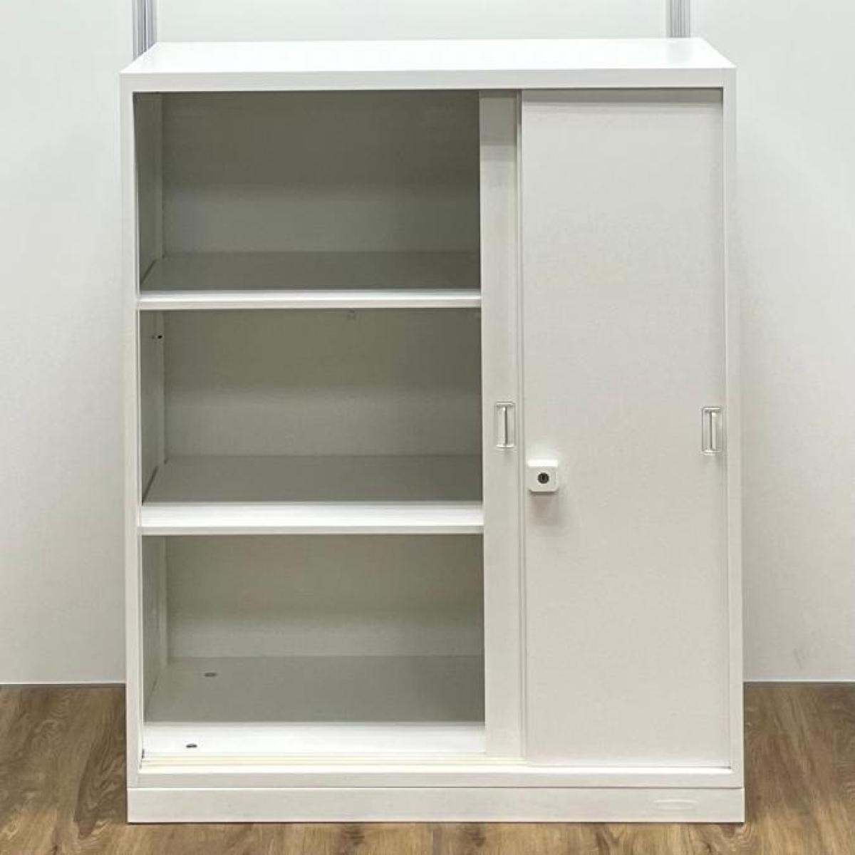 2枚引き戸書庫 オカムラ レクトライン 鍵付き シリンダー錠 ホワイト 天板無し スライド式の扉のため導線を邪魔しません