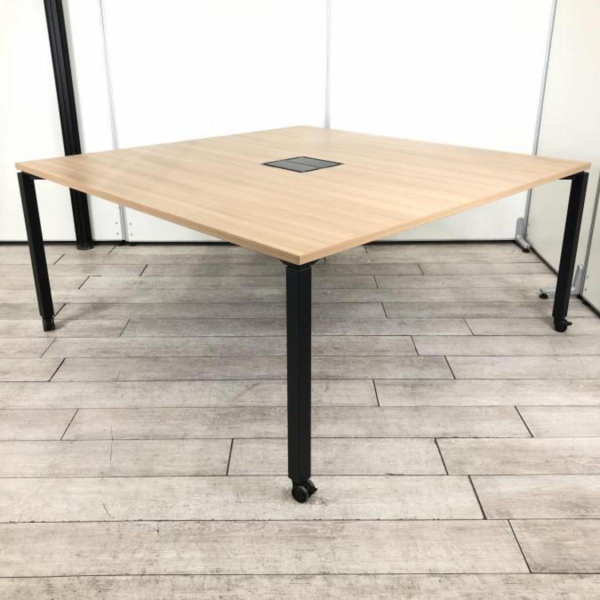 【在庫セール品・2台限定】【T12】■コクヨ製 ワークフィット ミーティングテーブル W1200×D1400㎜ ■配線カバー付き ■木目ナチュラル【配線カバー付きなのでデジタルツールを用いた会議にオススメ!】