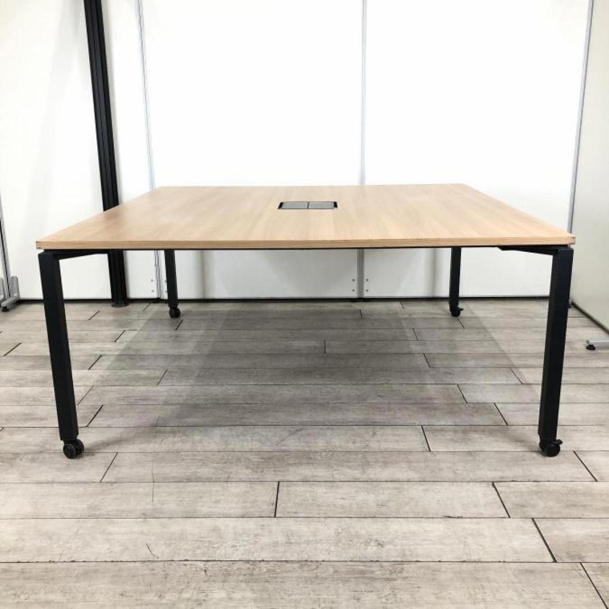 【在庫入れ替えSALE】【2台並べてW3200の大型デスクとしても使用可能!】 ■コクヨ製 ワークフィット (WORKFIT) ミーティングテーブル ■W1600mm ■配線ダクト付き ■木目ナチュラル天板×ブラック脚〈岐阜・愛知・三重・静岡・福井〉- 岐阜店