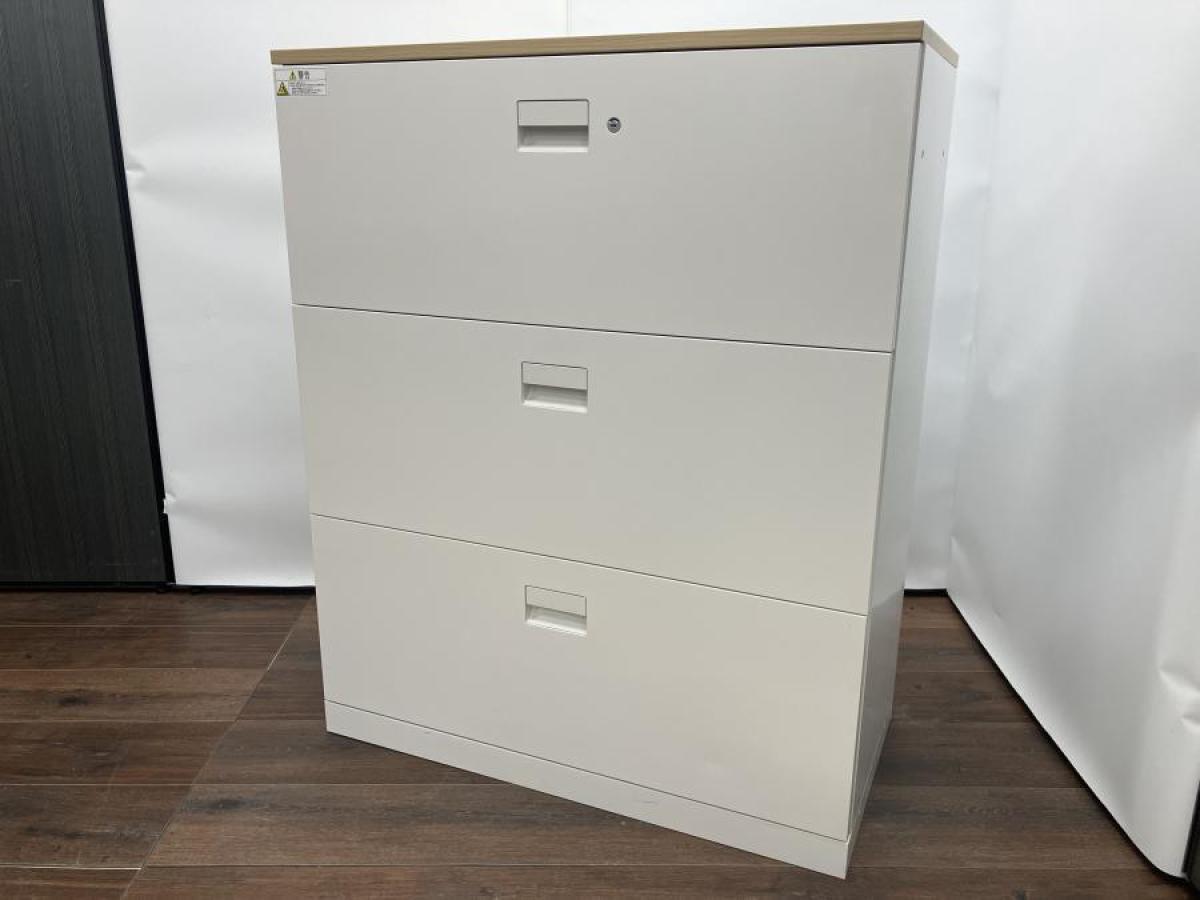 【在庫入れ替えSALE】【書類整理に!定番人気シリーズの引き出しタイプ書庫】■イトーキ(ITOKI)製 エスキャビネットシリーズ 3段ラテラル ■色:ホワイト ナチュラル天板付き- 岐阜店