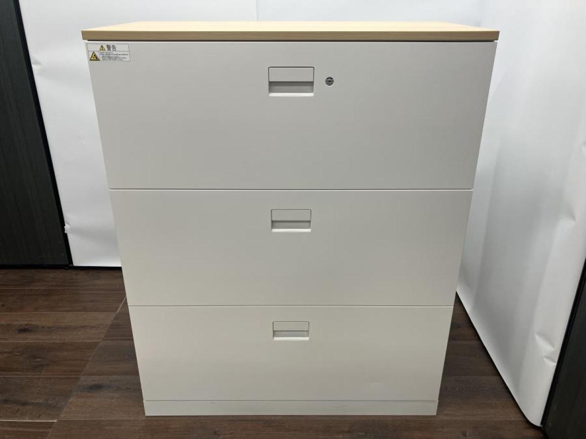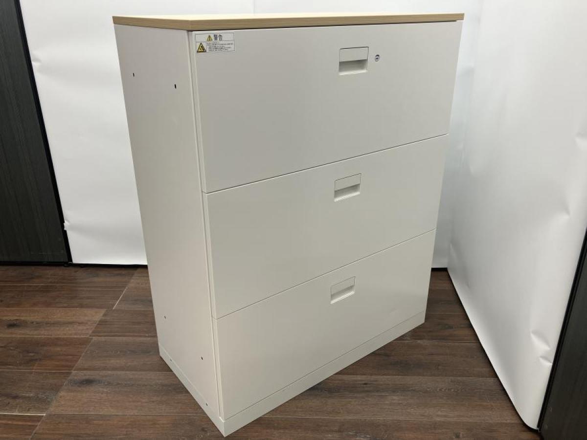 【在庫入れ替えSALE】【書類整理に!定番人気シリーズの引き出しタイプ書庫】■イトーキ(ITOKI)製 エスキャビネットシリーズ 3段ラテラル ■色:ホワイト ナチュラル天板付き- 在庫数