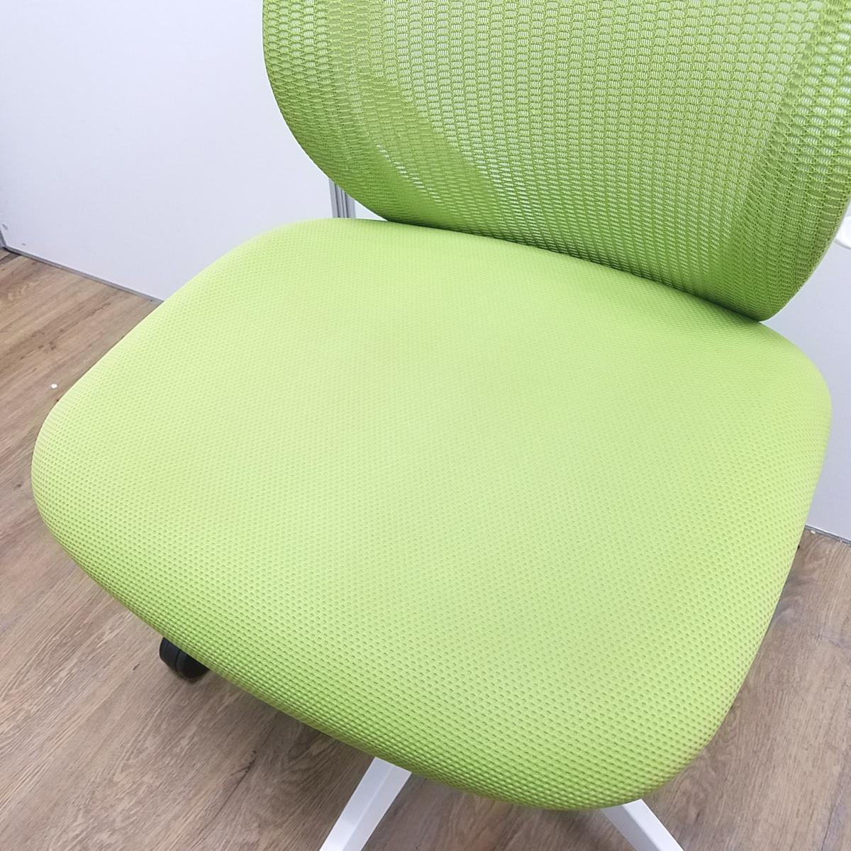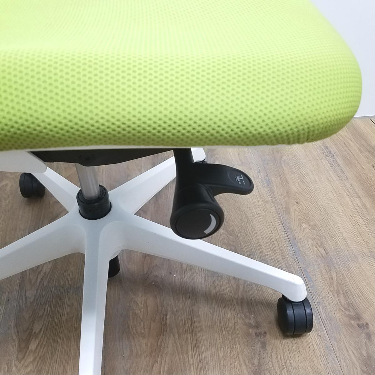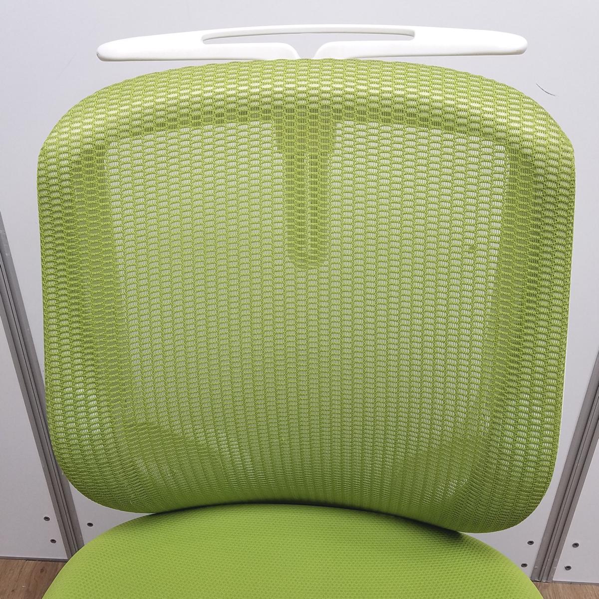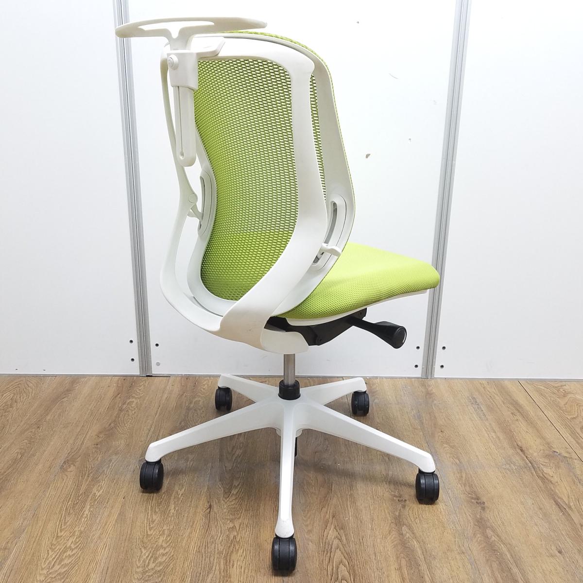 オカムラ製 シルフィシリーズ ライムグリーン ホワイトフレーム コートハンガー付き ローバック 肘無し 背面メッシュ 前傾チルト 自宅用 三次元曲面が快適にフィット! 機能付の大人気メッシュチェア! 肘無しローバックチェア!!- 京都東寺店